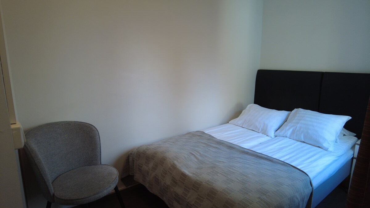 A room in a hotel located in the center of Kemi near the river bank. The hotel has a spacious terrace, saunas for free use, a spacious kitchen and even a snooker table. If you don't have time to go to the store next door, you can also use the in-house snack machine. Free Wi-Fi in all rooms. Private quadruple room with shared bathroom. The bathrooms are located in the immediate vicinity of the room. This room has its own refrigerator.