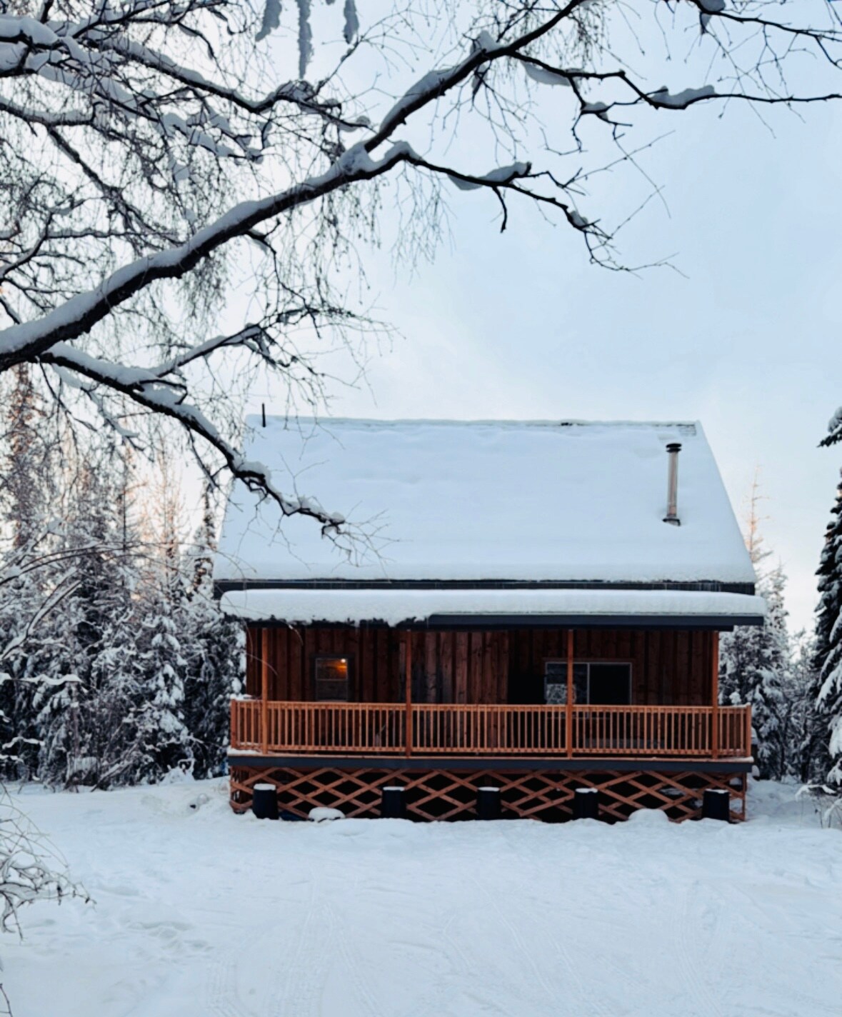 IG: rusticelegancelodge This quaint cabin offers a true Alaskan rustic feel, complete with modern upgrades. The perfect studio cabin has all the necessities; full size kitchen, three quarter bath, private loft with a queen size bed, a lounge area with a smart TV & a twin pullout couch. Our cozy cabin is located between North Pole & Fairbanks, making it easy to visit both cities. This is the perfect get-away spot for those who want to experience Alaska the right way.