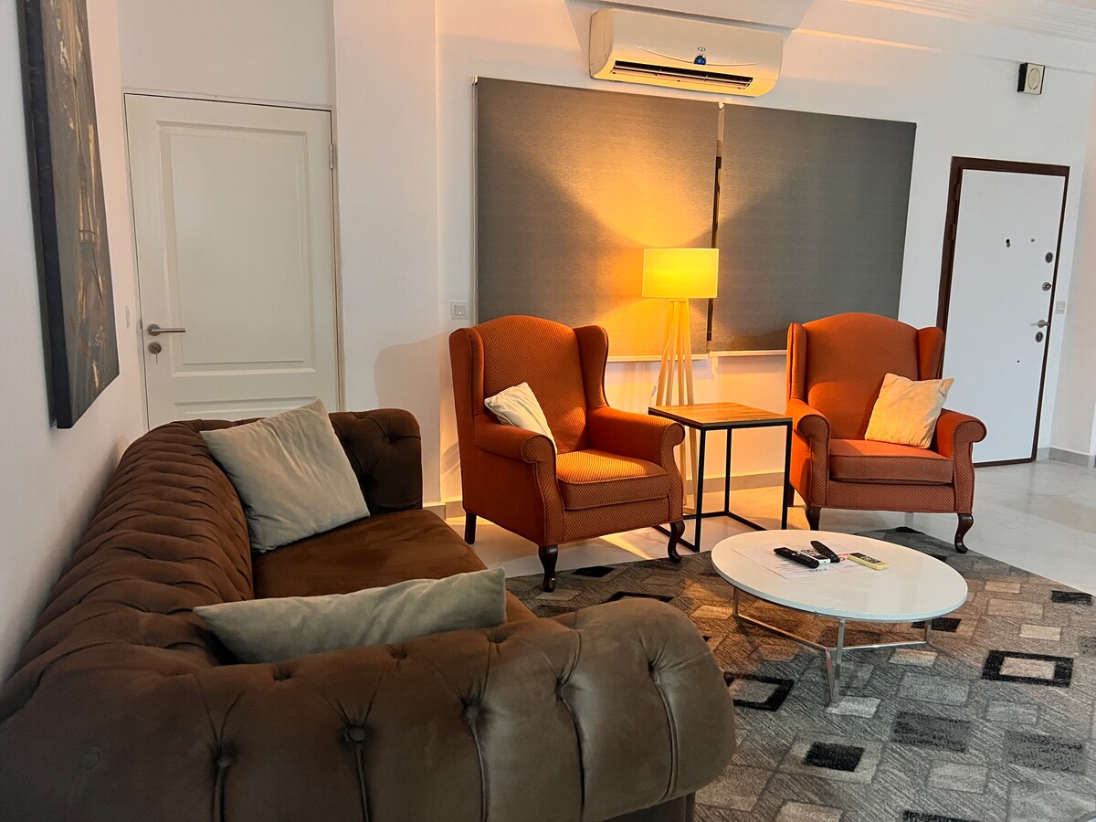 Disfruta de tu estancia en este moderno y espacioso apartamento de dos pisos, situado en el centro de North Ridge. El dúplex tiene dos dormitorios, está bellamente decorado, tiene techos altos y dos balcones con vistas al distrito financiero de Accra.