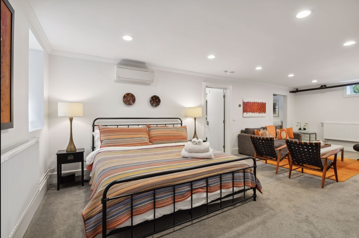 Este alojamiento tan extraordinario se te quedará grabado en la memoria. Disfruta de la sencillez del diseño escandinavo en una casa de huéspedes tipo estudio espaciosa y llena de luz. Todo ha sido recientemente renovado y no se ha escatimado en atención al detalle. Este estudio cuenta con: una chimenea de gas de mediados de siglo, cocina gourmet, ducha con azulejos y suelos de baño con calefacción. También hay aparcamiento en el garaje, una chimenea al aire libre y bicicletas para disfrutar. Céntrico, a poca distancia a pie del pintoresco centro de Hopkins.
