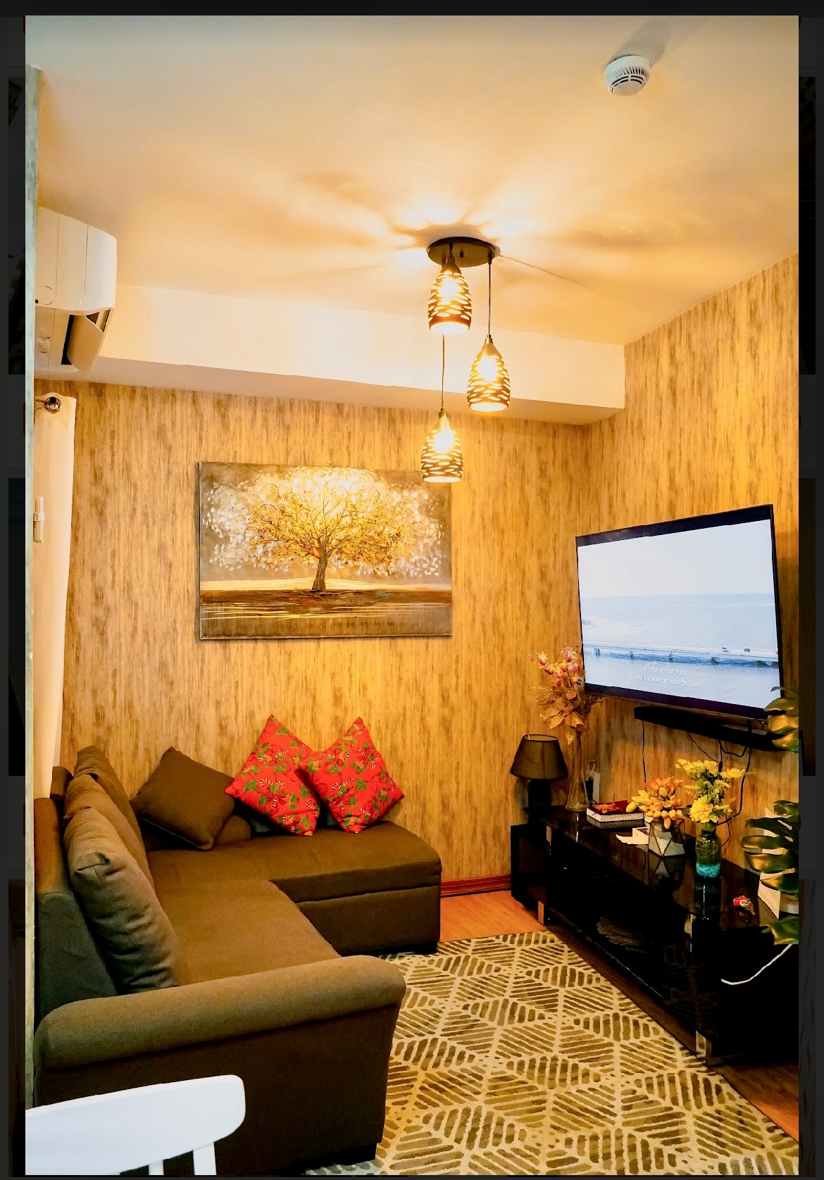 Ideal para familias de 4 ¡Nuestra unidad de un dormitorio recién inaugurada ya está abierta para huéspedes! Apartamento de un dormitorio. La habitación está equipada con lo siguiente: * Cama tamaño queen * Sofá cama (2 plazas) * 2 aires acondicionados divididos * Smart TV (con Netflix) de 55 pulgadas * Armario enorme para ropa *Microondas * Wifi *refrigerador * Arrocera * Cocina de inducción * Utensilios de cocina y comedor * Mesa de comedor * Sofá * Ducha fría y caliente Las comodidades incluyen: * Piscina. * Gimnasio * 2 tiendas 7/11 (1 abre las 24 horas; 1 abre hasta las 23:00 h)