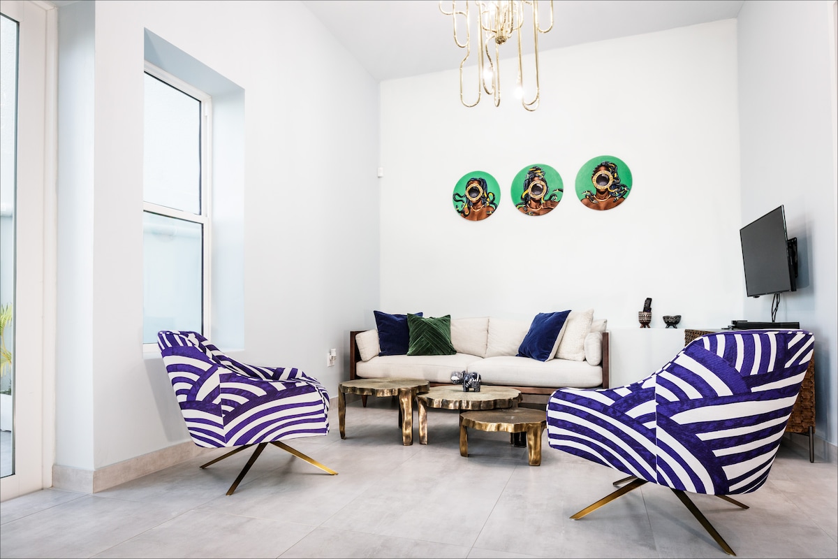 ¡Se aceptan reservas de una sola noche! Un loft de arte de lujo en el corazón de St. Thomas, este exclusivo espacio en una conveniente ubicación céntrica ofrece una elegante base de operaciones, con un diseño elegante, opciones de conserjería y un ambiente creativo. Perfecto tanto para la aventura como para la serenidad. Amplio espacio para descansar, con una estética histórica/contemporánea equilibrada, y cerca de playas, restaurantes, monumentos históricos, boutiques, + ferry/aeropuerto/transporte. Estacionamiento privado cerrado y una cafetería y galería de arte justo en la planta baja.