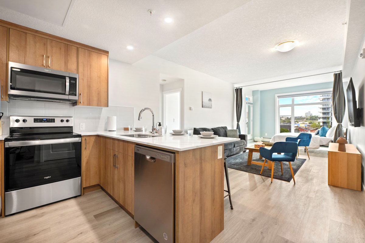 ¡Nuestro apartamento de un dormitorio es PERFECTO para una pareja o una persona soltera que quiera experimentar un sabor de la vida en el centro de Calgary! Estarás a poca distancia a pie de todos los servicios y de la famosa 17th Ave o Red Mile de Calgary, que cuenta con muchos restaurantes y tiendas únicas para explorar. Fácil acceso al transporte público (a 3 minutos a pie de la estación de tren C-Train), instalaciones deportivas y museos. El apartamento está totalmente amueblado con una plaza de aparcamiento subterráneo gratuita, wifi/cable gratuito, seguridad las 24 horas y acceso al gimnasio en el edificio. Y, por último, ¡podrás despertarte cada mañana con hermosas vistas a la montaña y al centro de la ciudad!