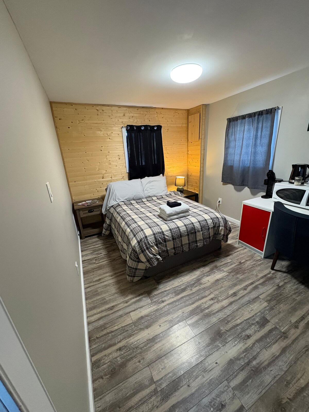 Esta elegante suite tipo estudio de nueva construcción se encuentra en una zona tranquila y establecida de Porter Creek. Esta suite cuenta con una acogedora sala de estar, una cocina espaciosa y totalmente equipada y una cómoda cama tamaño queen. Está adornada con persianas a medida, iluminación suave debajo del armario y una hermosa (y fácil de operar) chimenea eléctrica. En nuestra suite encontrarás una nevera de tamaño completo, lavadora y secadora, e internet de alta velocidad ilimitado junto con Netflix para que disfrutes viendo la televisión.