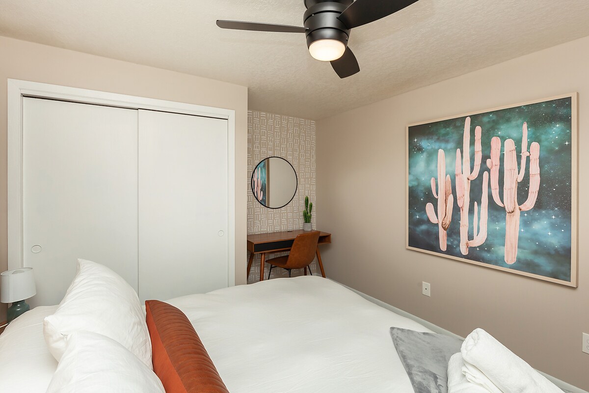Nuestra suite estudio de lujo está situada en una tranquila y exclusiva calle sin salida, a 5 minutos del aeropuerto y a 10 minutos del centro de la ciudad. Las comodidades incluyen entrada y terraza privadas, entrada sin llave, baño 3/4 en suite, lavandería, sala de ejercicios con remo y sauna de infrarrojos para 4 personas, suelos de baldosas con calefacción, controles dedicados de calefacción y aire acondicionado, agua blanda, microondas, cafetera, mininevera/congelador, wifi de alta velocidad de 1 GBPS, TV inteligente de 50 pulgadas, Apple TV, Netfilx, Hulu, Disney+, PC con Windows 10, monitor de 27 pulgadas, impresora, plancha y tabla y secador de pelo.