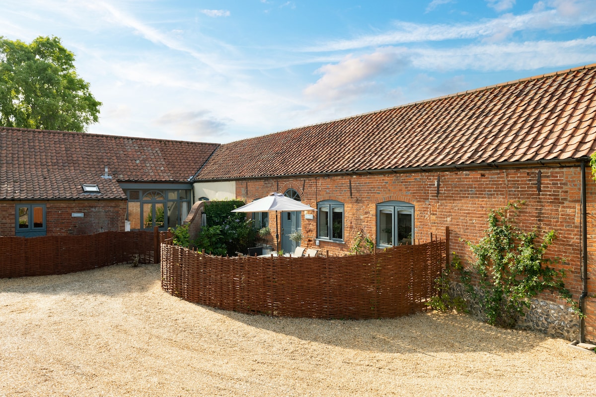 Ubicado en la hermosa campiña de Norfolk, nuestro alquiler vacacional está diseñado para 2 adultos (lo sentimos, no se admiten niños mayores de 2 años ni mascotas, pero podemos proporcionar una cuna/silla alta para un bebé). Perfectamente situado para explorar la costa, The Broads, Norwich y todo lo demás. Hermosamente elegante y cómodo, con todas las comodidades que puedas necesitar para disfrutar de un descanso de lujo. Nuestro granero recién convertido tiene su propia entrada y privacidad en nuestro entorno rural tranquilo con hermosas vistas al campo.
