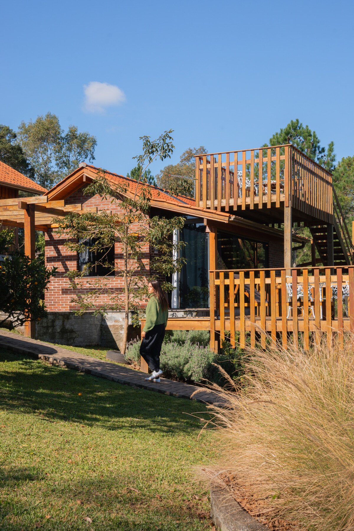 Acorde com o canto dos pássaros e a vista das montanhas na charmosa Cabana Pousada da Neve, cercada por muito verde e a apenas 2 min do centro e 30 min de Gramado. Desfrute de quarto térreo aconchegante, mezanino versátil, cozinha completa, salas integradas, banheira de hidromassagem e garagem coberta. Café da manhã (opcional pago à parte) e acesso fácil, sem estrada de chão, para viver o equilíbrio perfeito entre natureza e cidade.