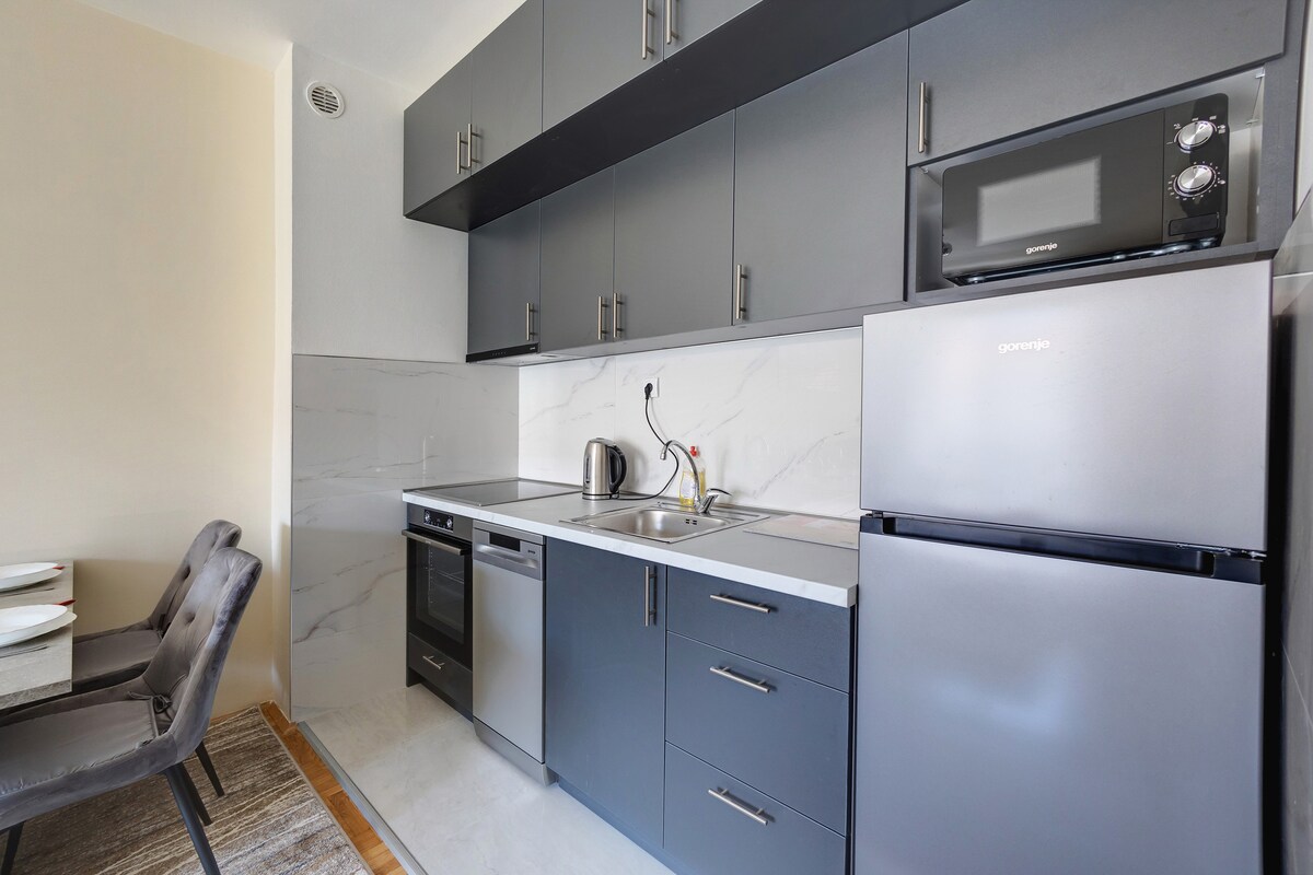 PORTOFINO es un apartamento amueblado con buen gusto y bien equipado situado en un edificio más nuevo en el centro de la ciudad. El apartamento está equipado con horno microondas, plancha, cocina, nevera, hervidor de agua, cubiertos y utensilios de cocina, lavadora, secador de pelo, albornoces y artículos de aseo. Hay conexión a internet wifi rápida y TV de pantalla plana tanto en la sala de estar como en el dormitorio. Si buscas un apartamento cómodo, elegante y bien ubicado en el centro de la ciudad, PORTOFINO es el lugar ideal para ti.