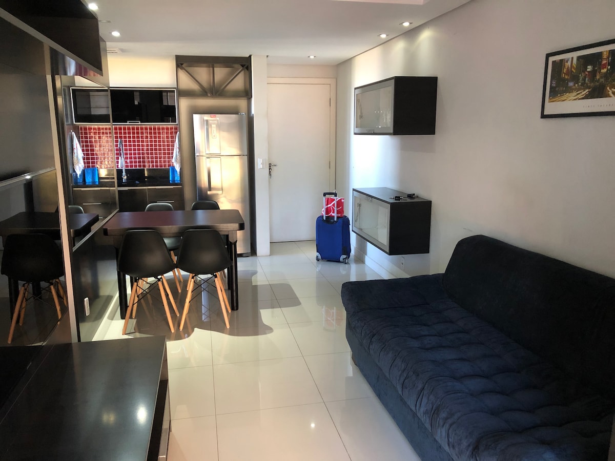 ¡Excelente ubicación, en una de las principales avenidas del centro! Apto completo para mantener la comodidad y la tranquilidad durante la estancia. En las inmediaciones tenemos la estación de autobuses; farmacias; panadería; mercado; frutería; restaurante; parada de autobús; centro comercial; estación de tren; gimnasio; carnicería; Estaci 24h; tiendas en general. En el apto hay cocina completa, lavadora, sala, sofá, smart TV con Netflix en la sala;Wi-Fi, aire acondicionado en la sala, 1 dormitorio con aire acondicionado y 1 baño.