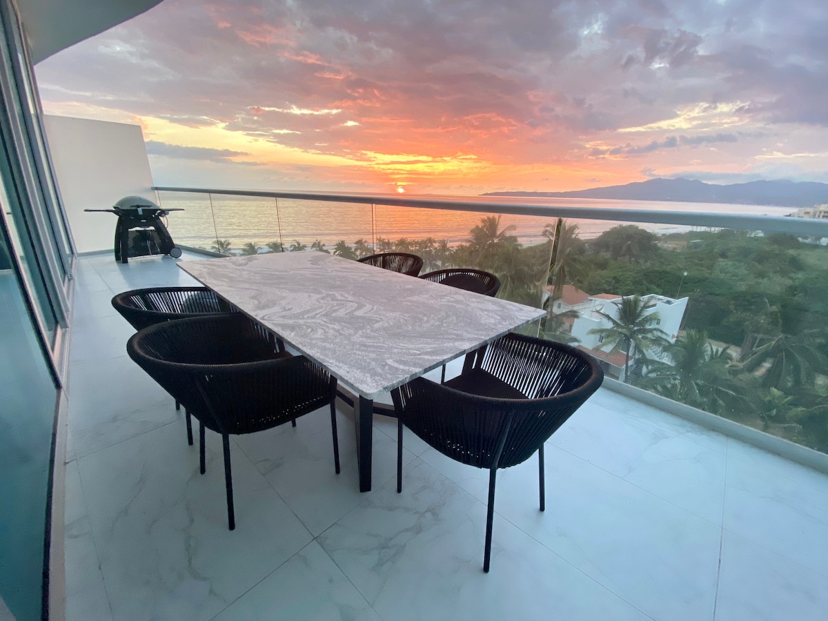 This amazing 3 bdrm, 3.5 bath aptm is on corner of the 8th floor of the oceanfront-beach access sayan Beach which has the best rooftoop in all puerto vallarta, There are big white marble floors throughout the Apartment with surround bose sound, high speed internet, 4 tvs, Dish Usa, Vitra and RH furniture, spectacular views to the bay and los muertos beach, the building has 3 pools on the lobby plus an infinite pool on the rooftop, 2 jacuzzies, sauna room, massage room, and paddle tennis court.