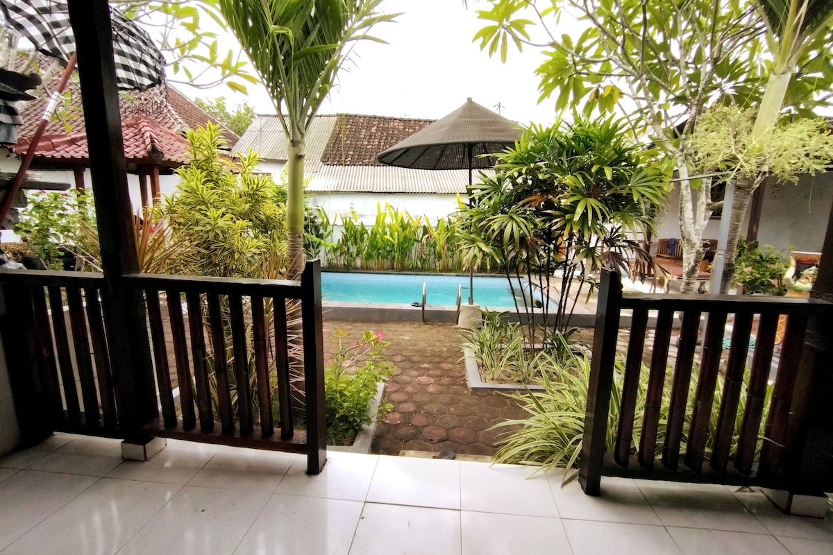 Nuestra villa es una muy buena opción si buscas naturaleza y un lugar tranquilo. Solo tenemos 4 habitaciones, por lo que nunca te molestará a muchas personas que se alojan aquí. Ofrecemos este precio, incluido el delicioso desayuno que puedes elegir. Hay muchas tiendas y warung cerca. También alquilamos motocicletas a partir de 80 km/día para explorar la isla. Ten en cuenta que no hay transporte público en Nusa Lembongan y Nusa Ceningan Me pide más información, como boletos rápidos, esnórquel,etc. ¡Nos vemos aquí!