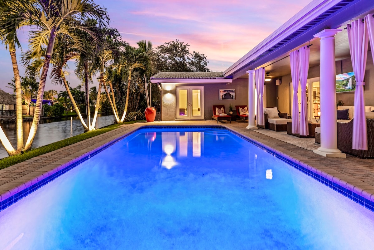 Casa con piscina en Florida en un canal en el cautivador Central Corals/Oakland Park. A minutos de Wilton Manors y las playas de Lauderdale. Disfruta de espacios abiertos llenos de luz, dormitorios generosos y una amplia terraza con vistas al agua. 3 camas/2 baños, cada habitación está ricamente decorada con ropa de cama de lujo, tocador y televisores. El patio trasero privado, la gran piscina climatizada, las tumbonas, el comedor al aire libre y los asientos del salón son tuyos para que los disfrutes. Completa con barbacoa y todos los servicios de piscina. Revisa las normas de la casa antes de reservar.
