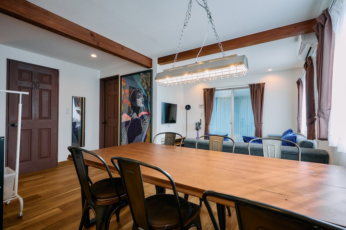 Por favor, siéntete como en casa en este alojamiento único y tranquilo. Renovamos una linda casa en Pink Totan, que fue construida hace 50 años. El exterior es lo mejor posible, y parece que se puede utilizar para acentuar la vegetación con el tiempo. El interior del primer piso está acabado con la pared de tierra del campo de arroz de Higashinami.Los muebles y las luces se pueden decorar con antigüedades y la cocina y el mostrador de la barra se pueden imaginar hechos a mano y varias escenas. El dormitorio de arriba es una pared de tierra de yeso con un acabado tranquilo. 01. Cama doble amplia Art Nouveau, iluminación, muebles, Antigüedades, criadas, decoración, etc. 02, cama doble amplia hecha a mano, iluminación, muebles, Antigüedades, criadas, decoración, etc. El primer y segundo piso también están en el primer y segundo piso, y están bien iluminados. Exponemos regularmente obras de arte. Seguiremos cambiando tu estancia en el futuro para que tu estancia sea aún mejor y más cómoda. Comencé la tarifa de opción de sauna de 6000 yenes.Tiene un baño exterior