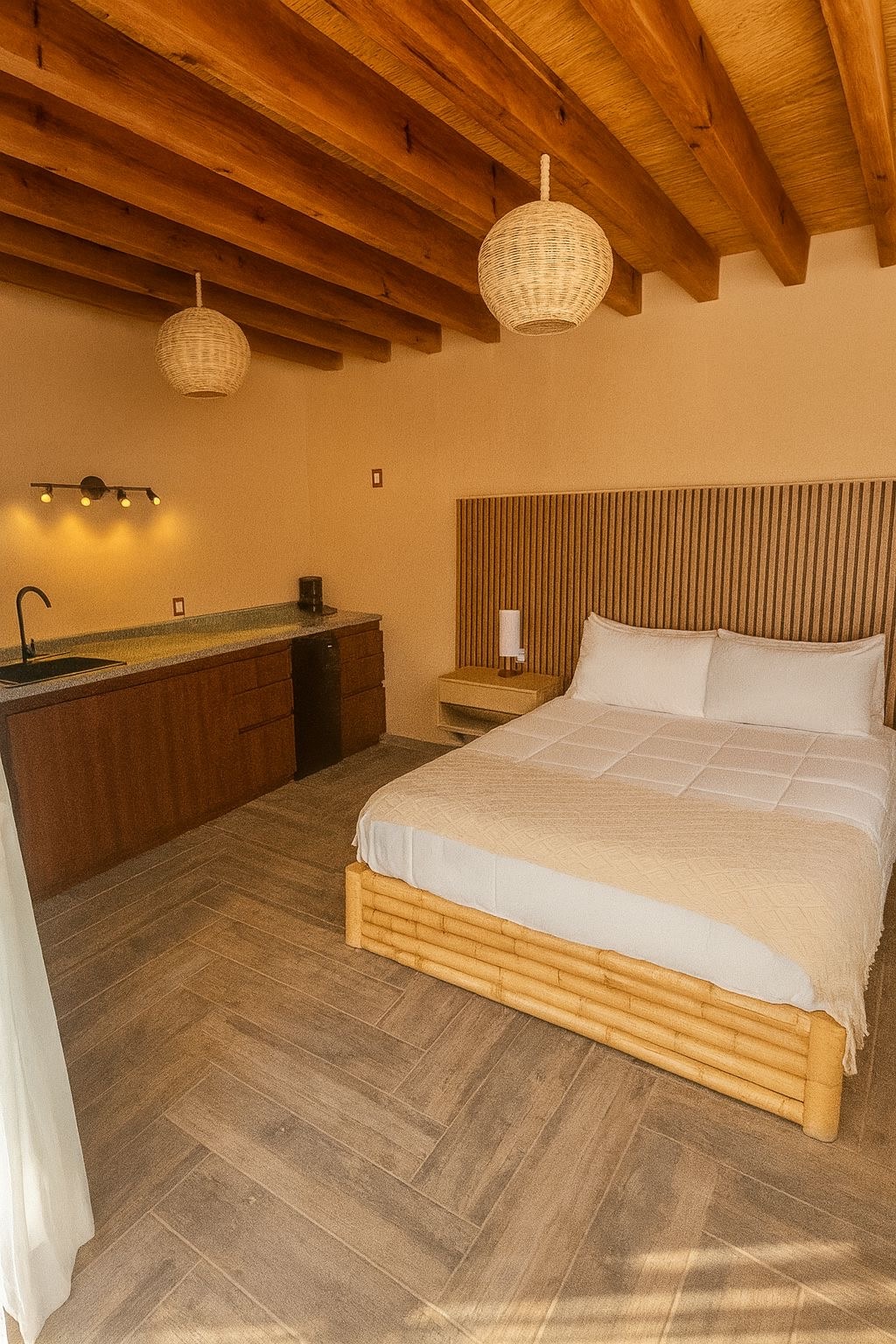 Bienvenido a Ixaya, un loft de lujo diseñado para ofrecer comodidad, privacidad y un ambiente de profunda relajación en medio de la naturaleza de Tepoztlán. Aquí encontrarás un refugio ideal para desconectar: cama King size, jacuzzi privado con calefacción (costo extra), cocina equipada, amplios ventanales y dos jardines exclusivos que llenan cada espacio de luz y serenidad. Ubicado en un fraccionamiento tranquilo y seguro, a solo 12 minutos del centro, podrás disfrutar de su energía única.