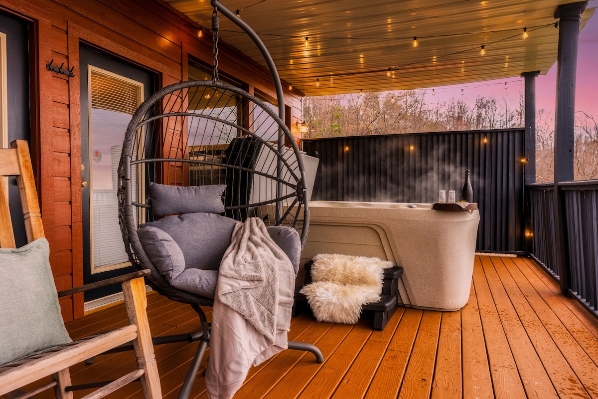 ¡Pasa tu escapada a la montaña en The Nest At The Foothills! Tu hogar lejos de casa en las Smokies... • Chalet de inspiración escandinava digno de HGTV de 864 pies cuadrados •Hermosas vistas a la montaña • A solo 3 millas del centro de Gatlinburg • Sistemas de juego clásicos de Nintendo y Super Nintendo • Duchas a ras de suelo • Jacuzzi con vistas • Chimenea eléctrica. • Camas tamaño king ¿Listo para disfrutar de este hermoso chalet de Smoky Mountain? ¡Reserva con nosotros hoy! *Al reservar esta propiedad, aceptas las normas de la casa y el contrato de alquiler*