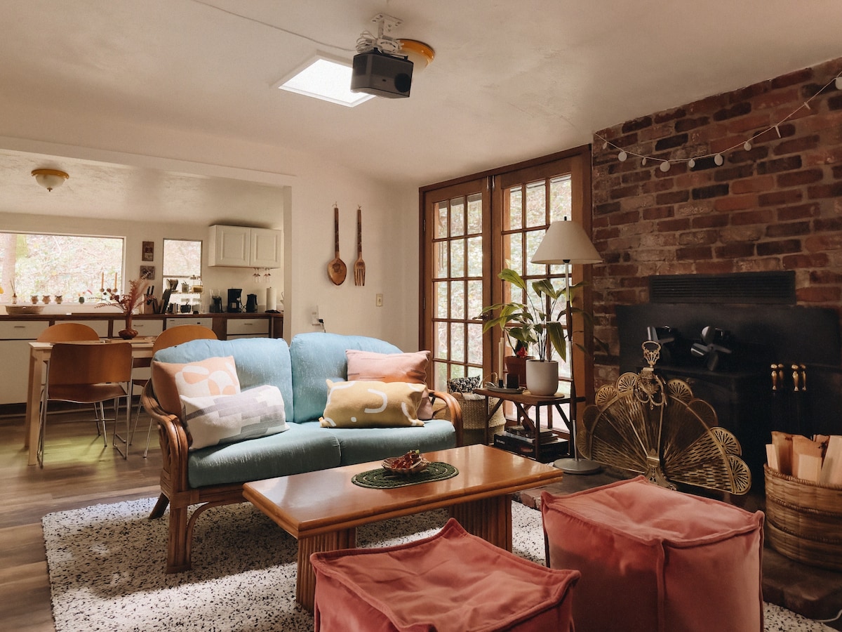 Bienvenido a nuestra encantadora casa de campo, un refugio recientemente renovado y bellamente diseñado enclavado entre los árboles en Duncans Mills, que ofrece impresionantes vistas al río. Disfruta de la tranquilidad mientras tomas un café por la mañana o te relajas con una copa de vino en la terraza privada. Para los entusiastas del aire libre, hay millas de rutas de senderismo a solo unos pasos, lo que te permite explorar la belleza natural de la zona. Pasea hasta la panadería local cercana o conduce un poco hasta la costa.