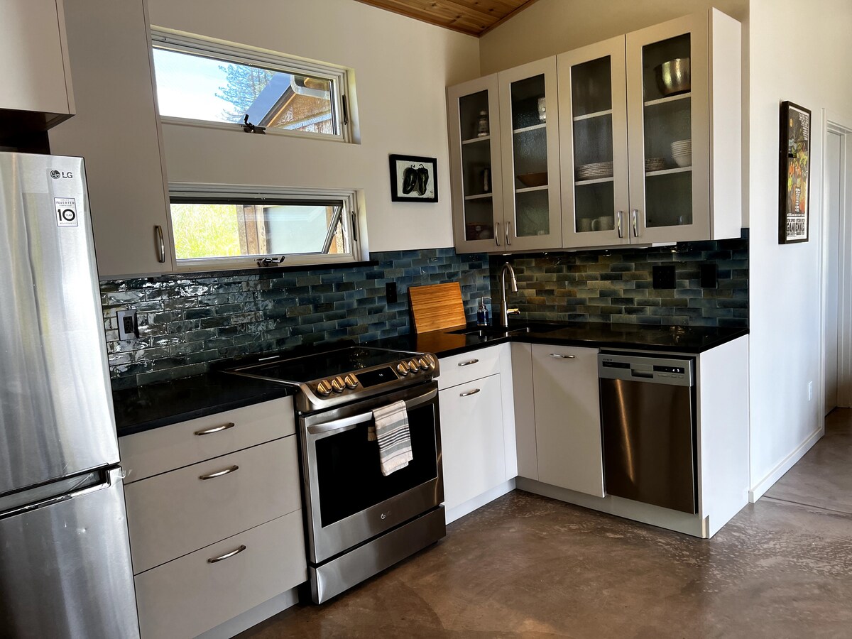 Piérdete entre las colinas cubiertas de secuoyas que enmarcan el océano a lo lejos. Esta moderna casa de 2 dormitorios integra una sala de estar abierta con un amplio patio al aire libre y cocina. Los muebles cuidadosamente seleccionados mejoran tu comodidad y entretenimiento. Experimenta el «West County» de Sonoma y el encantador Occidental a través del senderismo, el ciclismo, la cata de vinos, el descanso en la playa o lo que más te apetezca. Los niños pueden disfrutar visitando animales de granja.