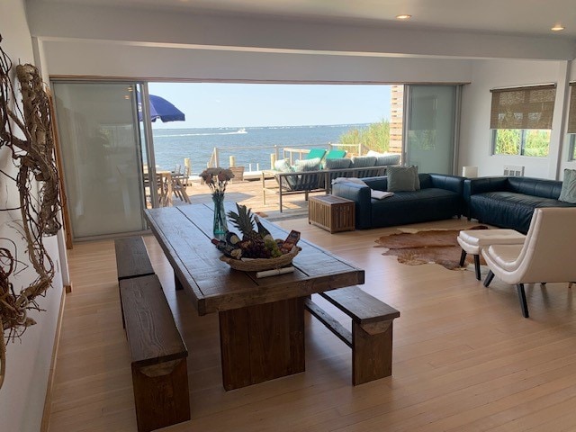 Beach front on the water. This paradise hosts its own private beach located on the bay. The house is close to the ferry and easily accessible to restaurants and everything Fire Island has to offer. The house boasts an outdoor shower, 2 bedrooms, kitchen, an indoor full bathroom, half bath, and a grill. Located on the 2nd floor and has views of the bay, beach, and sunset from every direction. Perfect for a family get away or a couple looking to have a romantic trip.