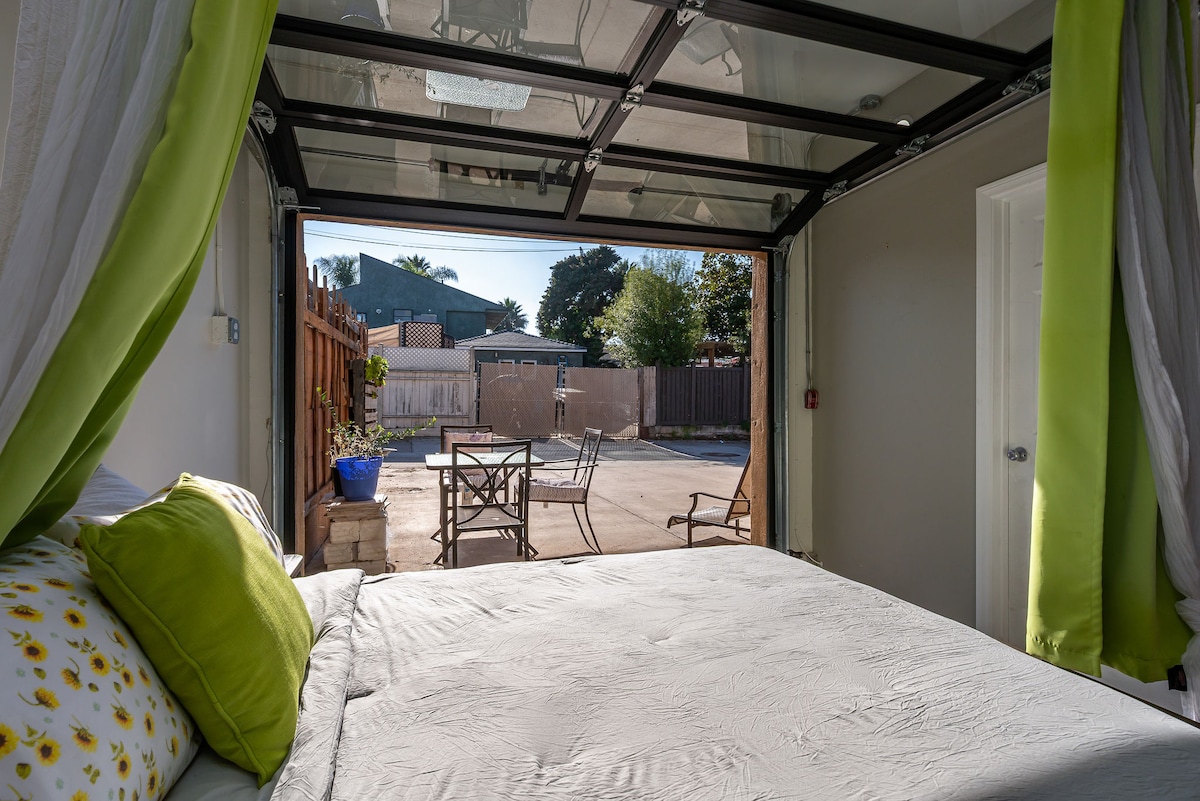 Bienvenido a tu refugio costero en las colinas sobre la ecléctica comunidad de Ocean Beach, en San Diego, California. Nuestro nuevo estudio privado independiente de 300 pies cuadrados ofrece comodidad, estilo y conveniencia, perfecto para parejas, viajeros solos o nómadas digitales. Disfruta de las hermosas vistas a la ladera y de las comodidades modernas a pocos minutos de la arena, Sunset Cliffs y el encanto relajado del centro de Ocean Beach.