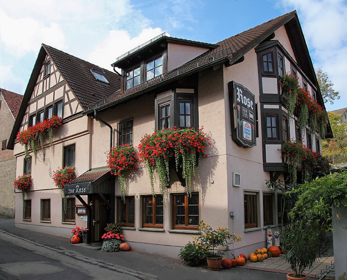El apartamento amueblado con mucho cariño se encuentra en un edificio protegido de la época de los fundadores en el ático, en el centro de Creglingen (a 17 km de Rothenburg) La casa pertenece a nuestra panadería. En la planta baja hay una cafetería donde también se puede desayunar. (Incluido) Se pueden guardar bicicletas. Previa consulta, los huéspedes pueden echar un vistazo a la panadería. El apartamento, la cocina y el baño están equipados con todo lo necesario. No se admiten mascotas