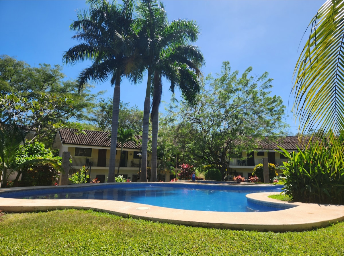 - A 3 minutos a pie de las tranquilas aguas de Playa Ocotal: perfectas para practicar esnórquel, kayak o un masaje junto a la playa. - Apartamento privado con cama tamaño king, cocina completa y piscina compartida en una comunidad tranquila y cerrada. - A 10 minutos en coche de los restaurantes, la vida nocturna y los supermercados de Playas del Coco. - El conserje gratuito organiza excursiones, chefs privados, transporte y actividades durante toda tu estancia. - ¡Reserva hoy mismo para disfrutar de la comodidad y la aventura!