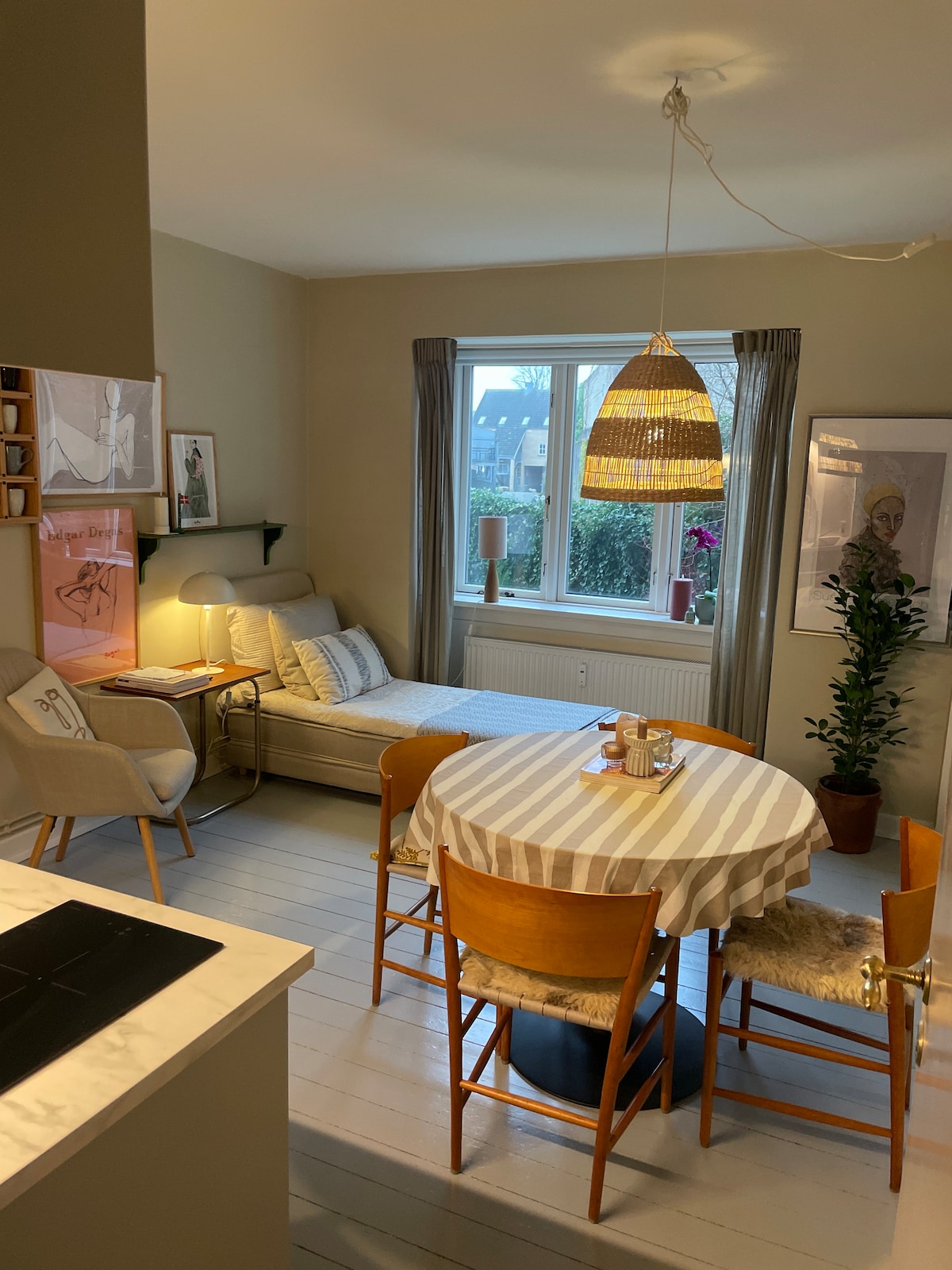 Disfruta de una estancia tranquila y céntrica en nuestro apartamento recientemente totalmente remodelado de 75 m². Ideal para personas que viajan solas o parejas que exploran Odense. LO más destacable: - Dormitorio grande con cama tamaño king. - Cocina totalmente equipada. - Televisor Samsung Frame de 75 pulgadas. - Almacenamiento amplio - Juego de patio al aire libre. - Acogedor hygge danés en todas partes. - Colchón inflable opcional queen - Entrada sin llave Este es nuestro hogar personal en Dinamarca, cuidadosamente renovado, y estamos encantados de compartirla contigo.