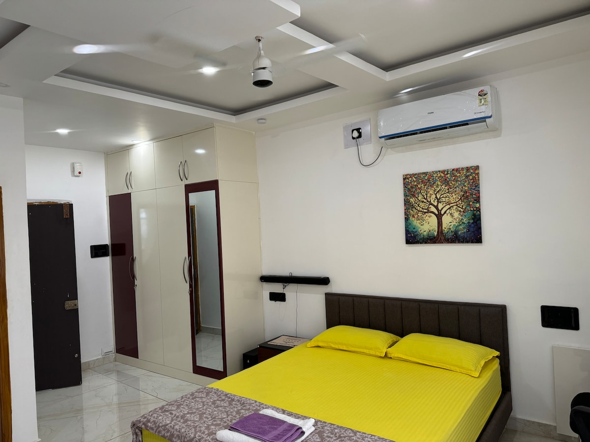 Nuestra propiedad es un apartamento acogedor de 1 BHK, a solo 500 metros a 600 metros de la playa del mar azul de puri. Está ubicado dentro de un hermoso y pacífico centro vacacional. El templo Lord Jagannath está a 3,5 km, el templo Sun en Konark está a 38 km de nuestra propiedad. Nuestro lugar tiene una cocina funcional, lo que significa que puedes cocinar cualquier cosa y lavar tu ropa (lavadora automática) desde aquí(wifi gratuito) y relajarte viendo Ott. el cuidador te ayudará a reservar un taxi, pedir comidas o comestibles, organizar el alquiler de bicicletas o autos .