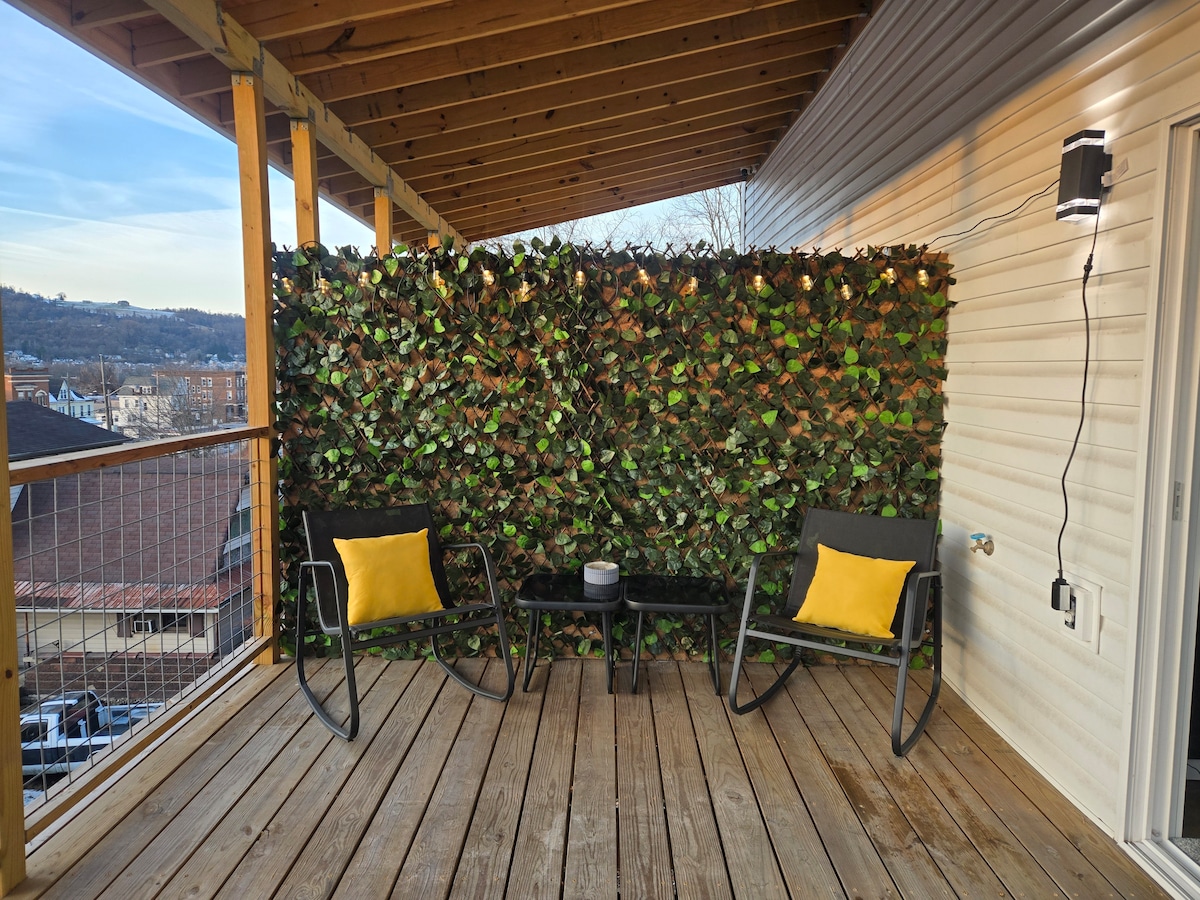 Pintoresco y bonito apartamento (dúplex) para una estancia cómoda ubicado en Wheeling Island. Tendrás todo el apartamento de la primera planta para ti. Ten en cuenta que el apartamento está situado justo al lado del casino de la isla de Wheeling y del estadio de la isla de Wheeling, a poca distancia a pie del puente colgante, del centro de la ciudad y de la interestatal. Siéntete como en casa en nuestro tranquilo apartamento, ya sea que estés jugando, mirando, visitando el sitio o simplemente de paso. Disfruta de Wheeling mientras te hospedas en nuestro hermoso alojamiento. Admitimos mascotas.