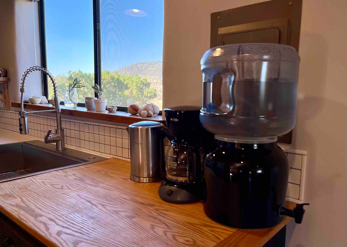 ¡Planea tus vacaciones en esta linda cabaña! La cocina está equipada con nevera/congelador, horno/estufa, microondas, tostadora, cafetera y mucho más. Hay aire acondicionado y calefacción, así como un televisor inteligente y wifi para que puedas disfrutar de una estancia cómoda, relajante y productiva. Además, estamos ubicados en el centro entre Los Álamos, Santa Fe, Pojoaque y Taos para que puedas visitar fácilmente algunos de nuestros lugares turísticos más increíbles.