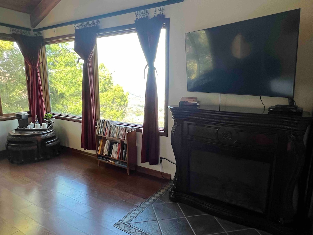 ¡Escapa de la vida cotidiana a Malibu Hideaway! ¡Ubicado en las colinas con impresionantes vistas a los cañones, montañas, el lago Sherwood y varias ciudades hasta donde alcanza la vista! Nuestros muebles están hechos a mano con madera reciclada de la soleada California. Nuestro colchón híbrido orgánico de lujo es de espuma/muelle para una mayor comodidad. Edredón mullido en los meses fríos. La suite cuenta con una bañera de estilo vintage, tocadiscos, chimenea de imitación, Keurig, microondas, mininevera, TV inteligente de 55 pulgadas, mesa/sillas y mesa de té antigua.