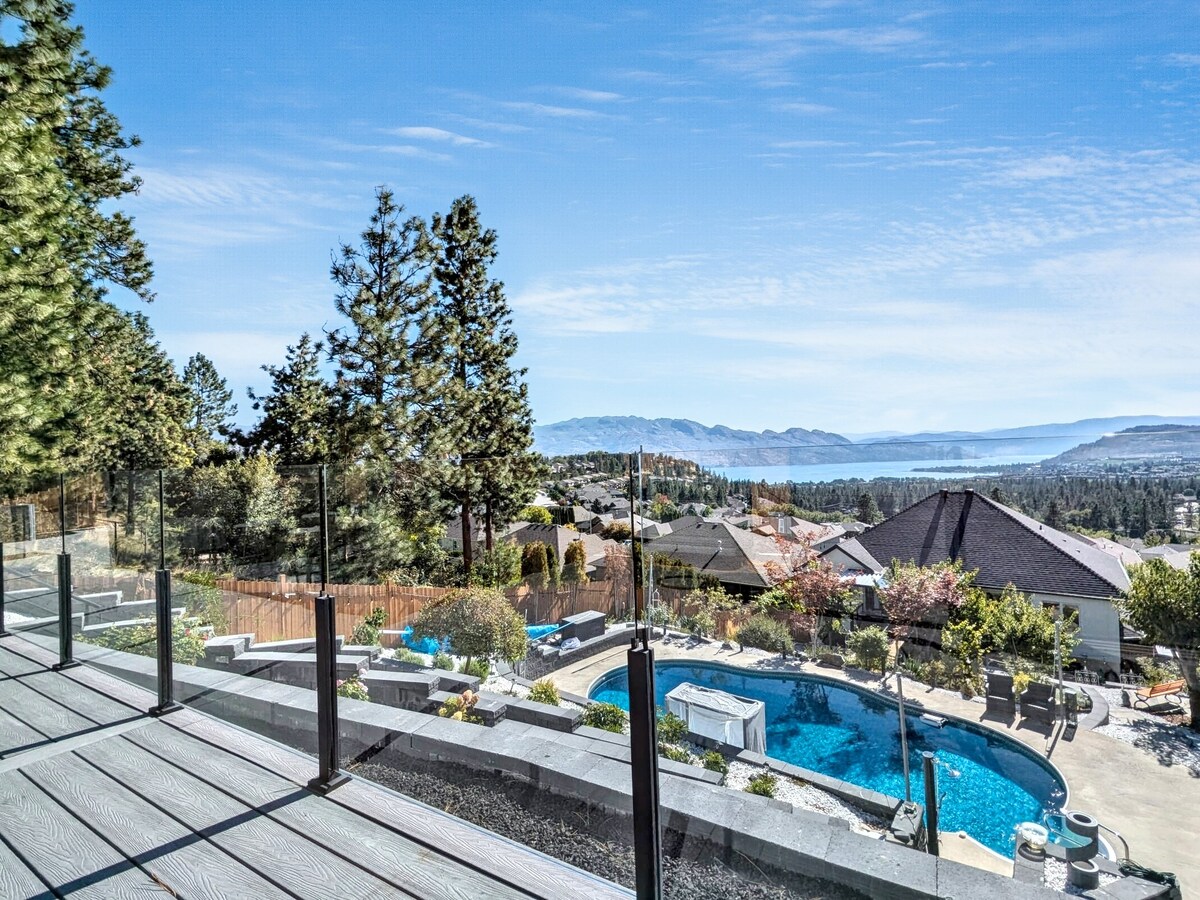 Una impresionante casa con increíbles vistas panorámicas del lago y las montañas, una gran bañera de hidromasaje y sauna, piscina climatizada al aire libre (mayo-septiembre) El ABnB mejor clasificado en el Okanagan, estás reservando un impresionante chalet de 3 niveles y 6 dormitorios. Atendemos a familias que desean disfrutar de unas vacaciones privadas exclusivas. Varias áreas de descanso privadas de entrada y salida, áreas para niños para jugar, en su mayoría se admiten mascotas con tarifa variable. No hay gastos de limpieza con ayuda. Ponte en contacto con nosotros antes de reservar