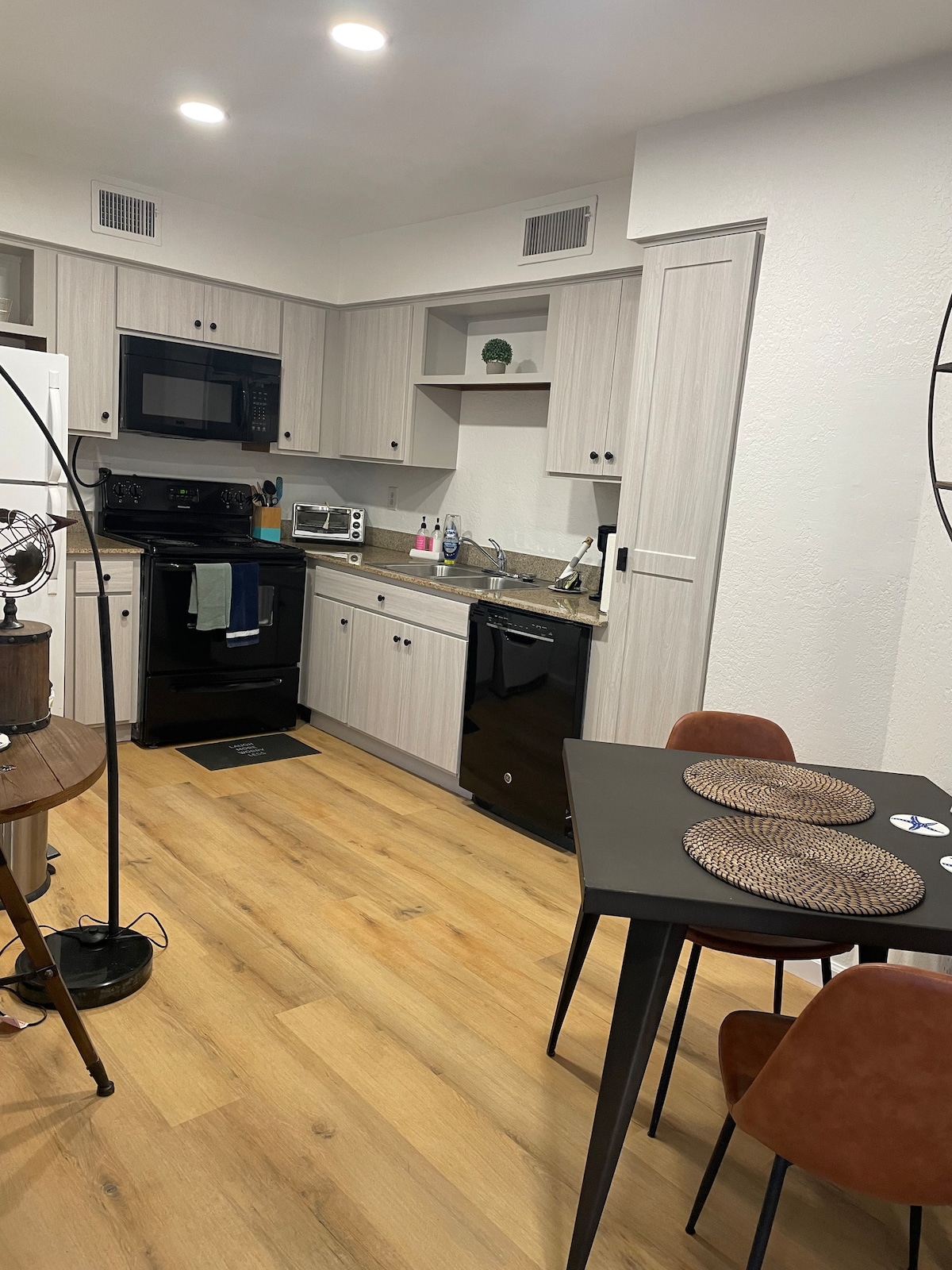 Ya sea que estés de visita por negocios o para relajarte, déjate llevar a una tierra lejana llena de colores y encanto vibrantes, ¡todo en el centro de Oklahoma City! Nuestra herencia significa mucho para nosotros y está inspirada en cada detalle en nuestro estudio de lujo. ¡Todos los alojamientos del sudeste asiático dan la bienvenida a los huéspedes con una taza de té y mucha hospitalidad! Tela de seda, tonos de joyas y un refugio tranquilo para relajarse o trabajar: nuestro hogar ofrece todas las comodidades y comodidades modernas que necesitas para quedarte en casa lejos de casa.