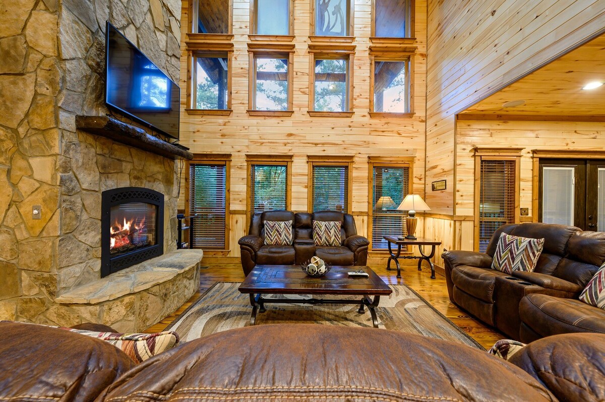 Relájate en una joya de Hochatown de 6 dormitorios, 5,5 baños y 3 pisos con un toque de mediados de siglo y encanto rústico. Piensa en el jacuzzi, la chimenea, las parrillas, el futbolín, la sala de juegos y los televisores inteligentes, además de televisores inteligentes y wifi rápido. Los perros son bienvenidos ($ 50 adicionales por noche, máximo 2). Amplio con chimeneas, enormes ventanas, duchas de lujo y balcones por habitación tamaño king. Una estancia destacada: ¡reserva tu aventura hoy mismo! Perfecto para familias o grupos, está cerca de la diversión de Beavers Bend. ¡Espera noches acogedoras, vistas épicas y recuerdos en abundancia!