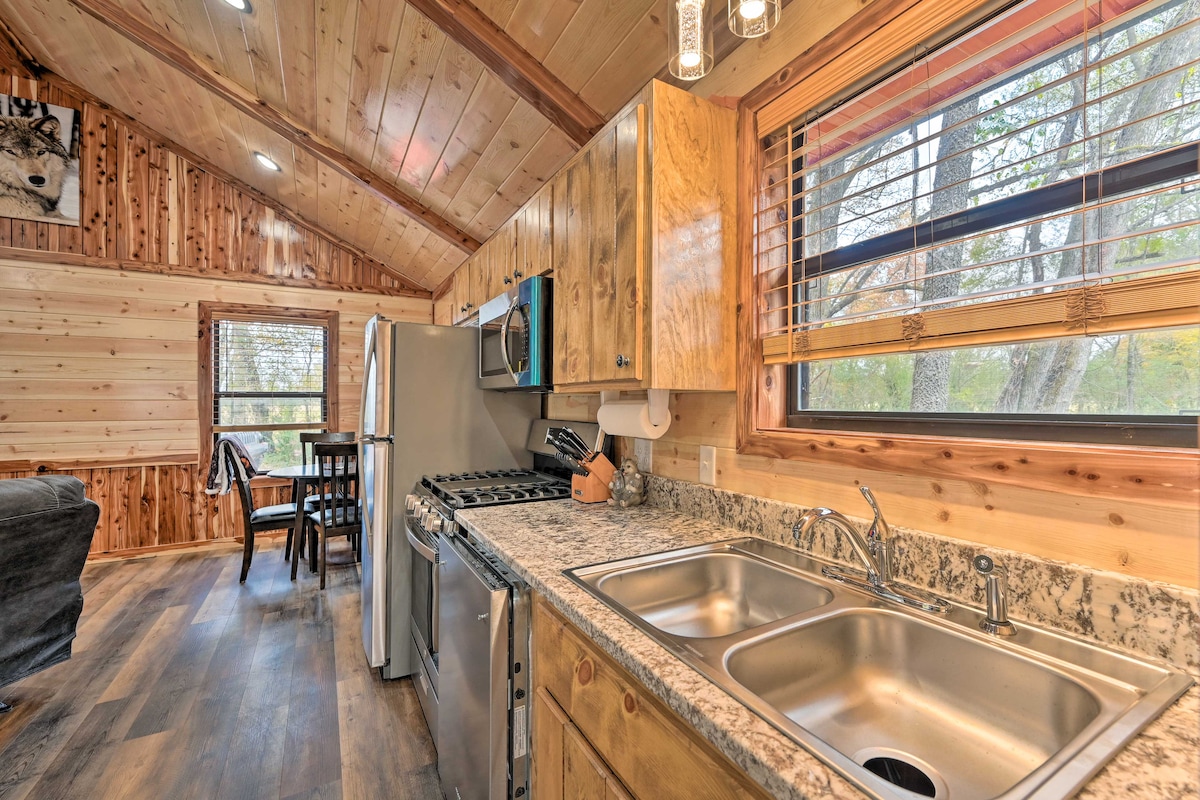 La serenidad del desierto de Oklahoma está a la vuelta de la esquina en este apartamento de vacaciones arbolado. Ubicada a 24 kilómetros del puerto deportivo Beavers Bend, esta encantadora cabaña de 1 dormitorio y 1 baño es la escapada de bajo perfil perfecta. Cuando no estés relajándote junto al agua en Broken Bow Lake, come algo en The Blue Rooster Restaurant o pasa la tarde explorando el Parque Estatal de Hochatown. Por las noches, disfruta del paisaje relajante mientras te relajas junto al fuego. ¡Tu refugio rústico te espera!