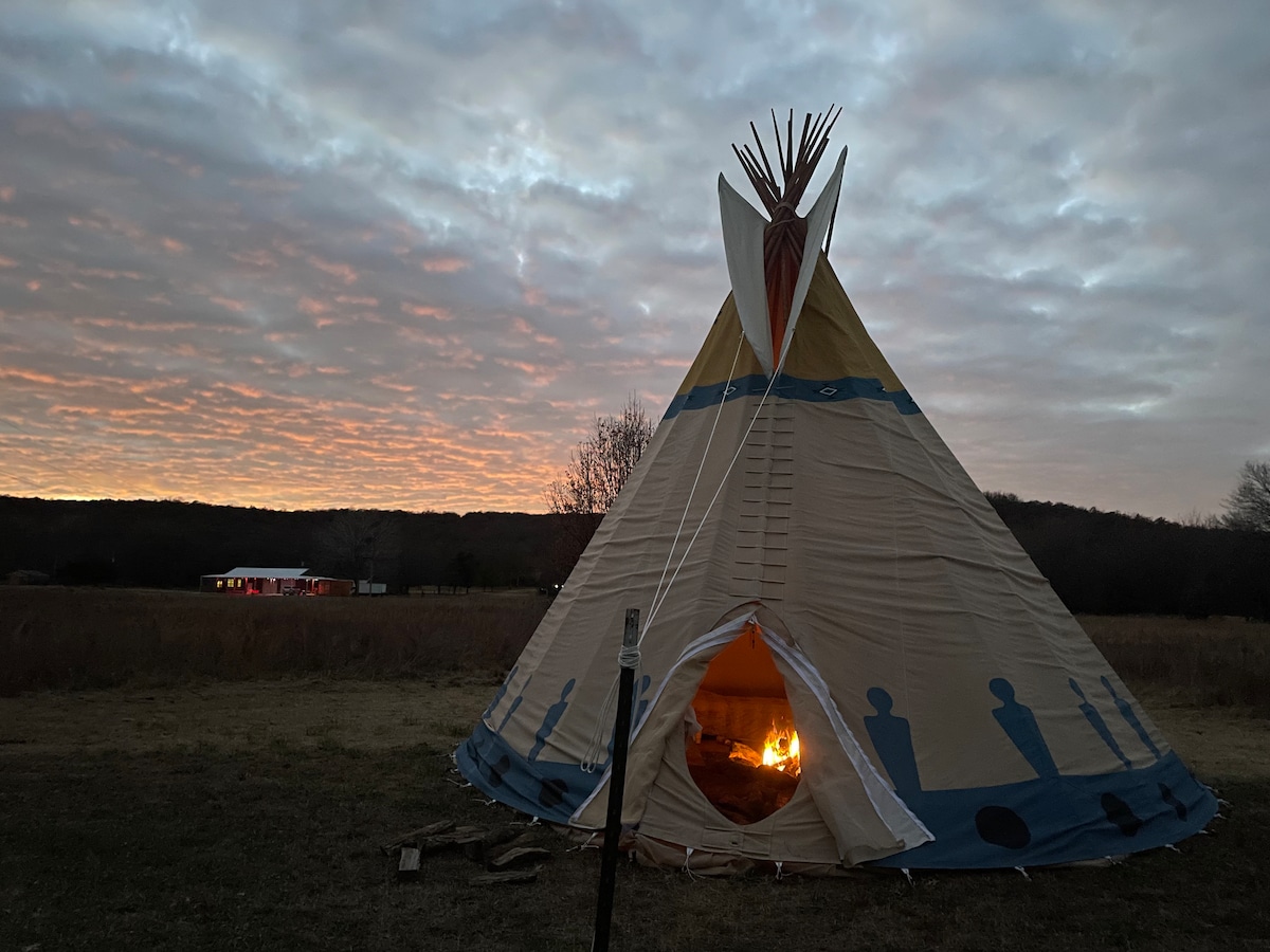 En un valle tranquilo dentro de la Nación Osage, viene una antigua forma de vivir y pensar. Ubicado en una granja nativa soberana, Smoke Signals en Delaware Creek ofrece su vida tradicional de tipi. Vuelve a viajar cuando comenzó el tiempo mientras observas las brasas desde el fuego que sale hacia las estrellas de arriba. Ven a compartir un camping primitivo, ya que solo el gran espíritu podría proporcionar. Reúnete alrededor del fuego sagrado y da gracias por todo lo que el universo ha proporcionado. Redirige tu energía para el 2024. Danza fantasma.