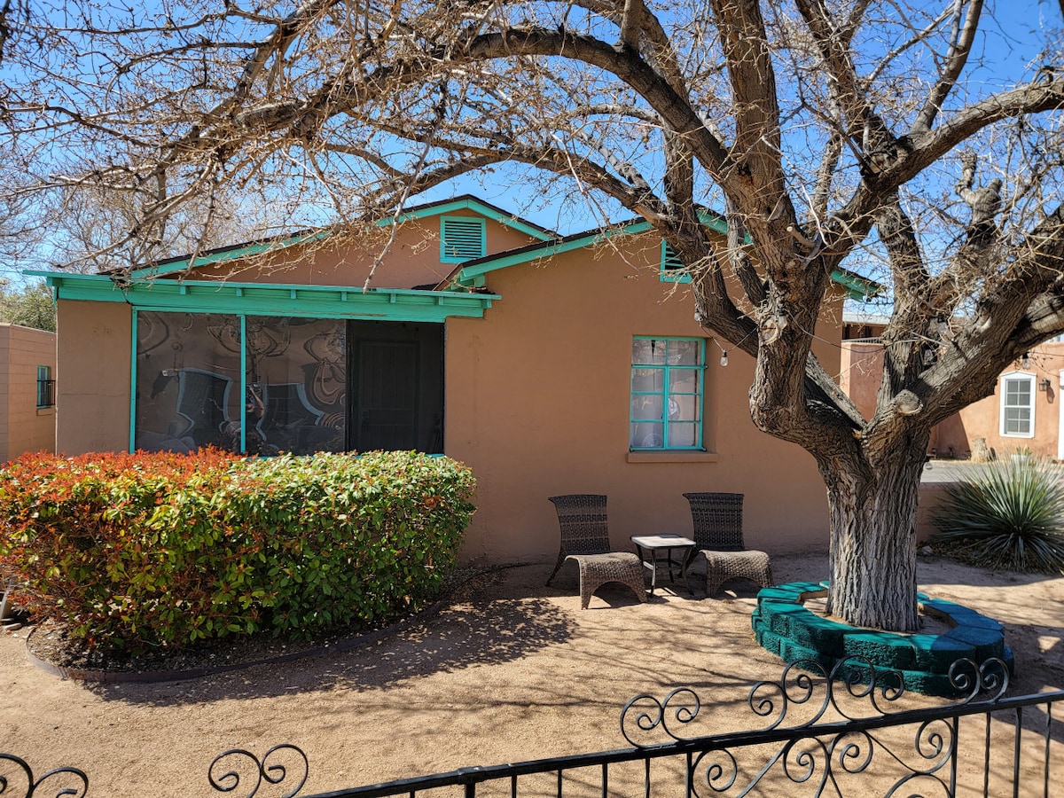 ¡Te damos la bienvenida a Writers House! ¡Una casa con aprecio por la literatura! ¡Perfecto para parejas o amigos que buscan escapadas o personas que trabajan y visitan Nuevo México! Estamos en el centro y a pocos minutos a pie del histórico casco antiguo, el mercado de comida artesanal Sawmill Market, el parque Tiguex y muchos museos para adultos y niños. Después de un día de exploración, llama a este lugar tu hogar lejos de casa con todas las comodidades básicas que puedas necesitar y un bonito patio trasero para disfrutar del aire fresco de Nuevo México.