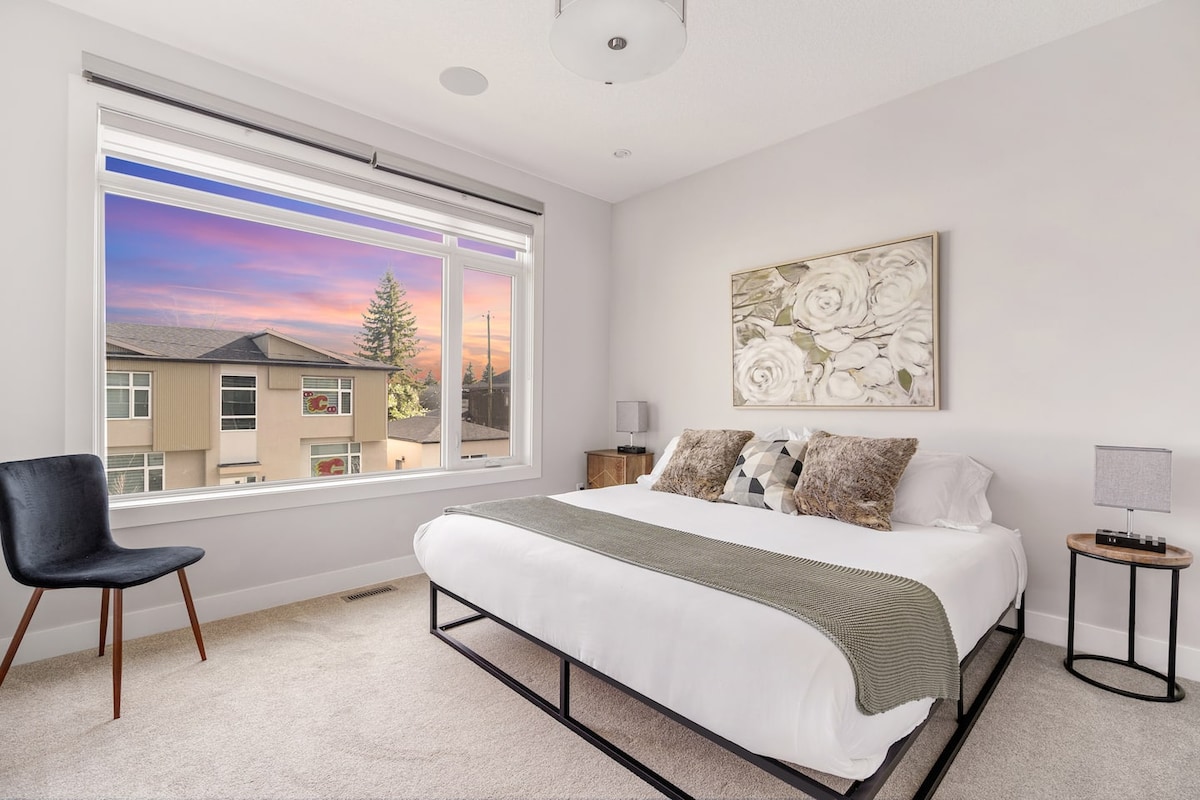 Vistas al centro | Cama tamaño king | A minutos del Saddledome | Aparcamiento subterráneo