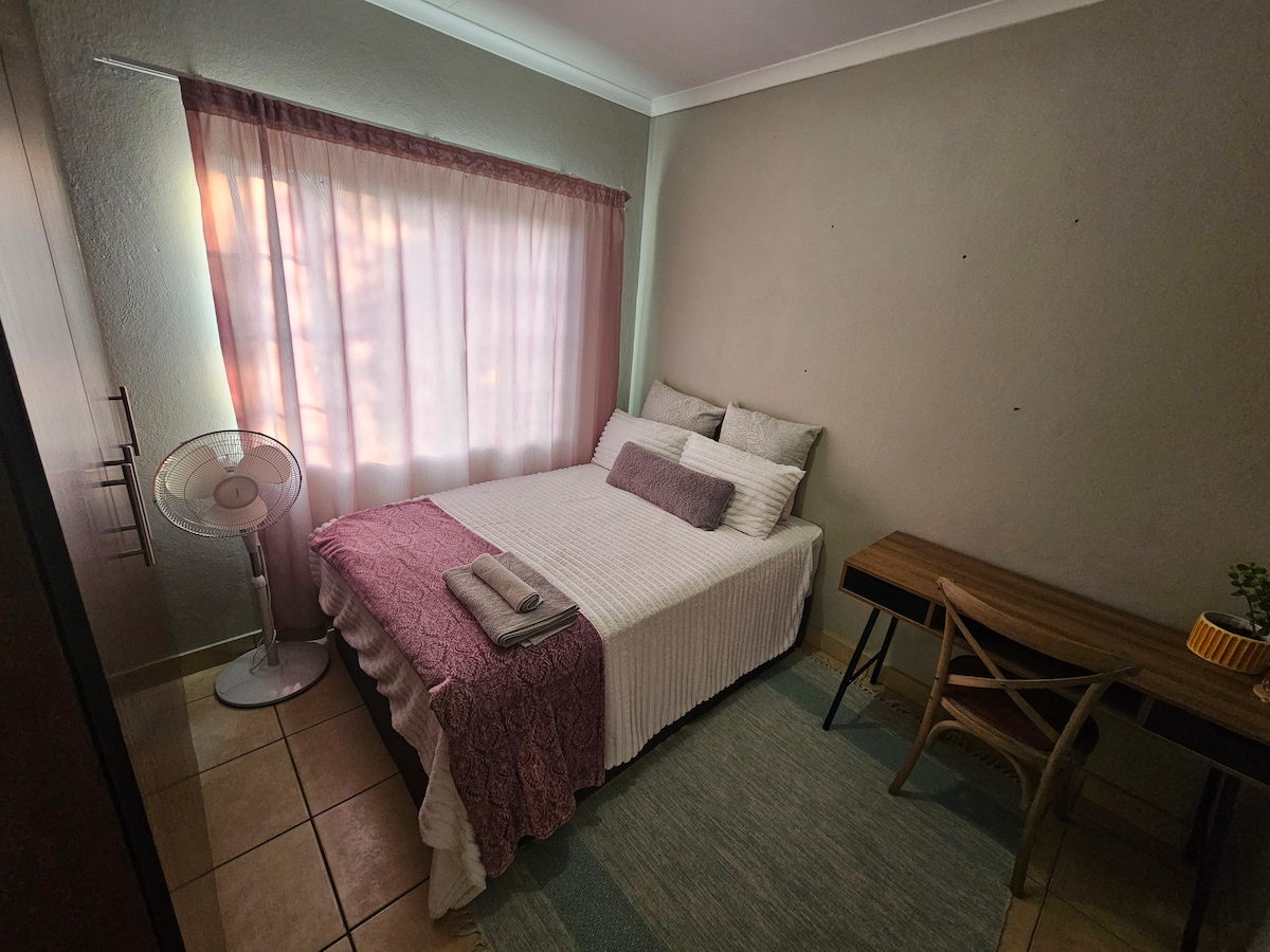 Disfruta de tu estancia en esta tranquila y elegante casa adosada. Céntrica, cerca de colegios y del centro comercial. Situado en un barrio seguro y tranquilo. Esta unidad está recién reformada. Cocina totalmente equipada con microondas, fogón, nevera-congelador, utensilios básicos y vajilla. Amplio comedor y salón con servicios completos de dstv. 1 dormitorio con cama tamaño queen y baño privado con ducha y bañera. 1 dormitorio con cama individual, 2º baño con bañera. Garaje con cerradura.
