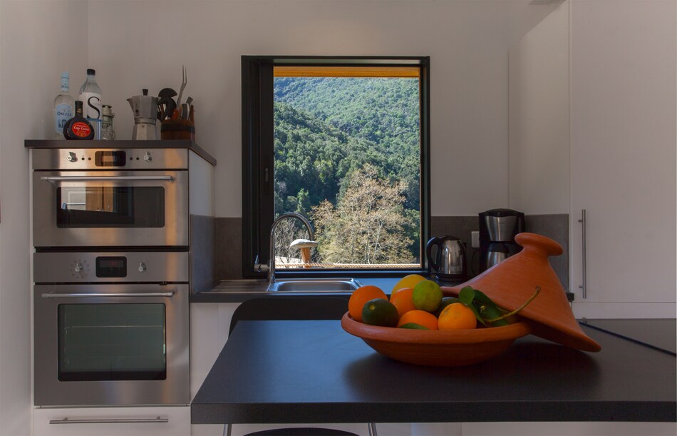 El acceso a nuestra cabaña l'Albitru es un pequeño sendero que serpentea en el corazón de nuestra finca. Entrarás en nuestra cabaña por una pasarela y tendrás a tu disposición un espacio único. Las vistas del valle de Ampugnani hasta el mar son increíbles. Luego sube a la azotea, se sentirá como si estuviera flotando... El desayuno se sirve a la hora que elija y «U Rifugiu», nuestra mesa de invitados, le recibe para cenar.