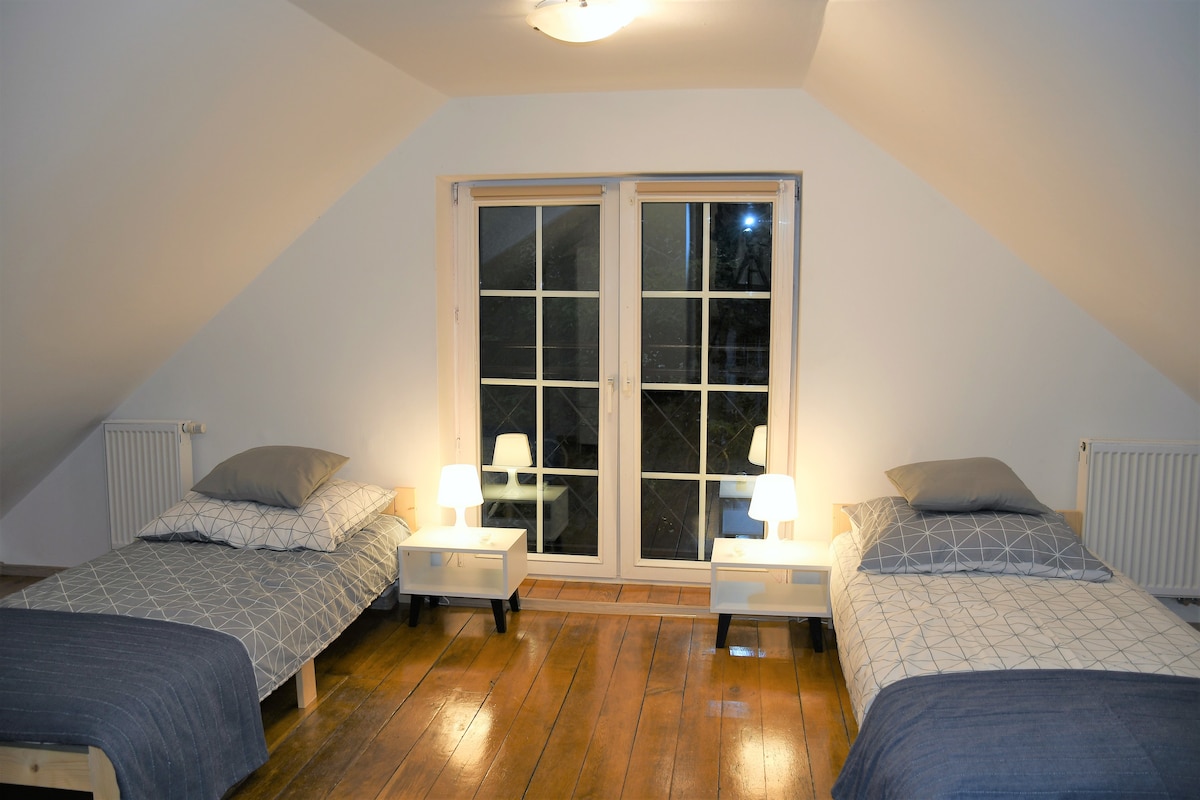 Un espacioso apartamento de tres dormitorios cerca del casco antiguo y la estación de tren West en Olsztyn. Dos dormitorios con camas matrimoniales, una tercera y una sala de estar con sofás cama. Una moderna cocina totalmente equipada. Baño con tina y bidé. Balcón, espacio de estacionamiento gratuito en el garaje subterráneo. Excelente ubicación, cerca de atracciones, tiendas y transporte público. Ideal para familias o grupos de amigos.
