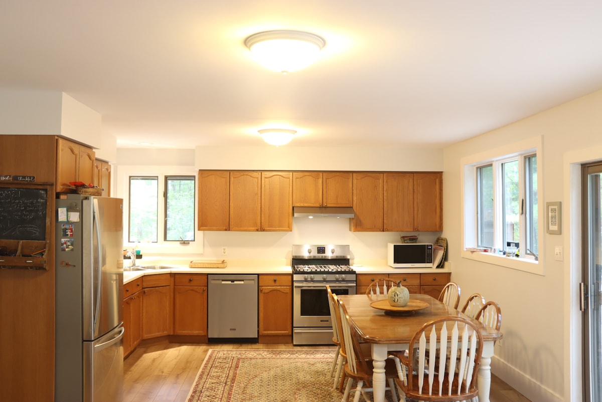 Escápate a nuestro elegante Airbnb de concepto abierto a pocos pasos del río Rideau. Nuestro Airbnb cuenta con vistas a las esclusas de Rideau desde la parte delantera y a nuestra propiedad de 6 acres desde la parte trasera. Lleva nuestra canoa o tablas de remo al río, disfruta de una fogata bajo las estrellas, camina por los senderos cercanos o explora la cercana ciudad de Merrickville. Disfruta de tu propio patio privado con mesa de comedor, barbacoa y mucha privacidad.