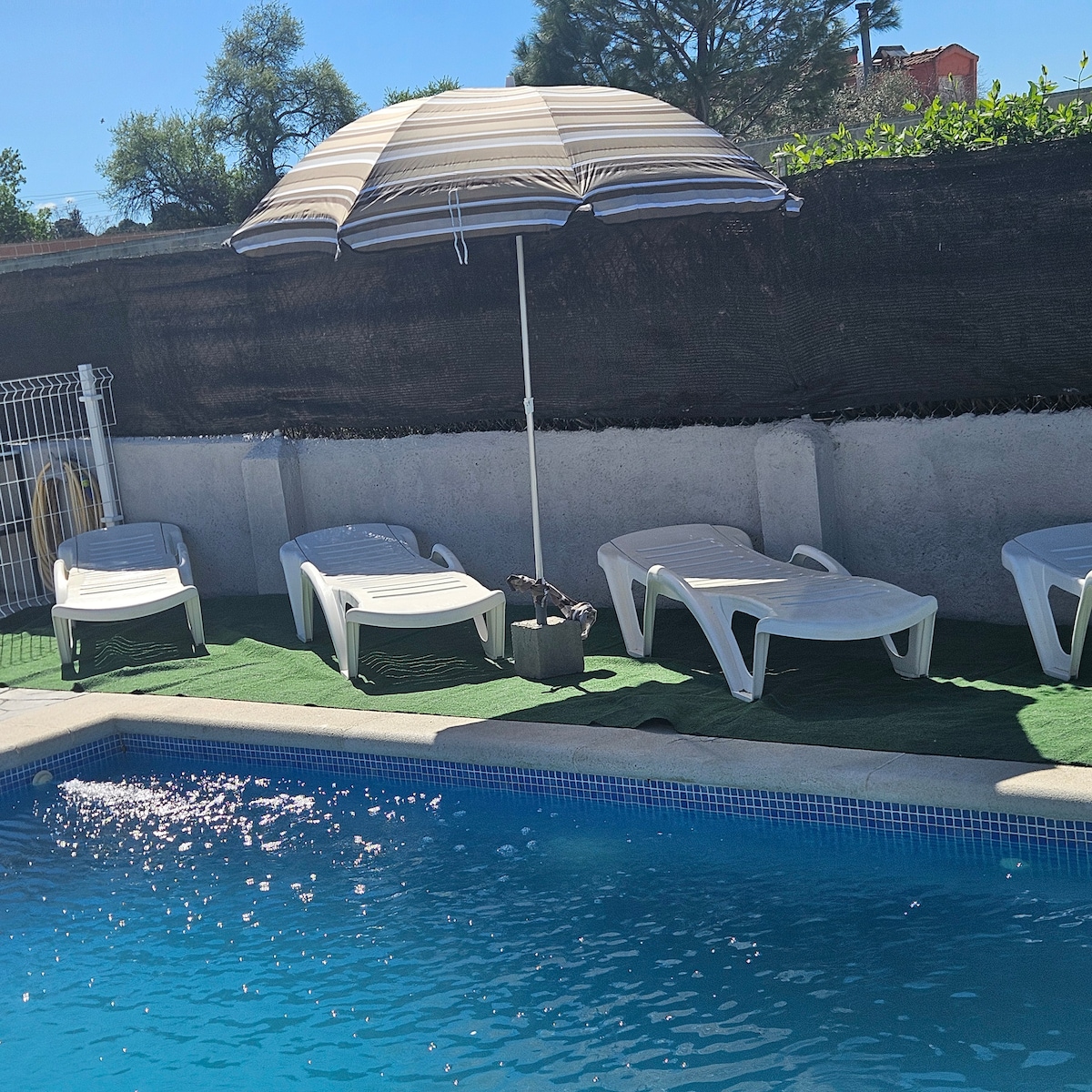 Chalet construido en 2019 con licencia para alquiler de corta estancia no turística. El chalet cuenta con todas las comodidades para disfrutar de la estancia. Eficiencia energética A. Está preparada para hasta 7 personas, ya q tiene Wifi en toda la parcela (300MB), piscina (con piscina para niños adosada), cenador con barbacoa de obra, más de 400m2 de césped artificial, jacuzzi interior, Ps4, proyector HD, juegos de mesa,... pero no para despedidas de soltero o eventos similares