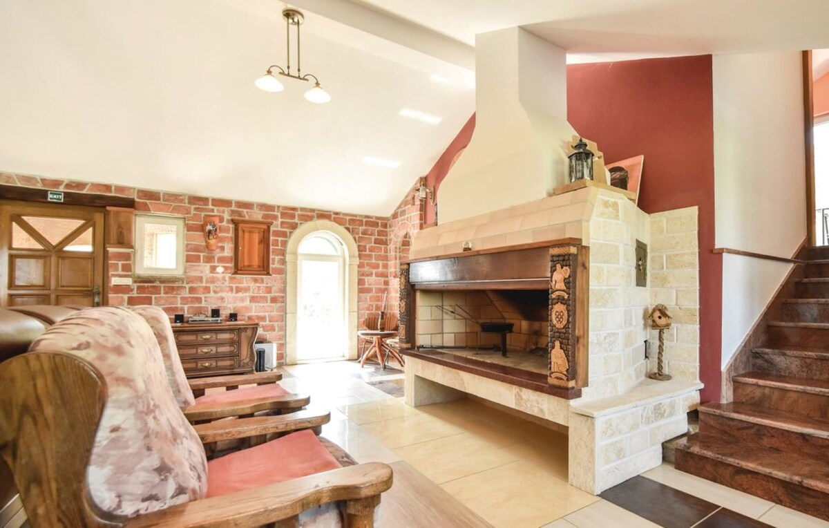 Relájate con tu familia en esta acogedora escapada. Consta de una cocina con comedor, una sala de estar, tres dormitorios, cuatro baños, un inodoro y un gimnasio con mesa de billar. Delante de la casa hay una piscina, instalaciones de barbacoa, juegos de salón, una sección vallada para niños, estacionamiento privado y un comedor. La ubicación de la villa proporciona privacidad y un oasis de tranquilidad, al mismo tiempo que cuenta con todas las comodidades necesarias para vivir cerca. Está a solo 27 km (20-25 minutos en auto) de Split y a 39 km del aeropuerto.