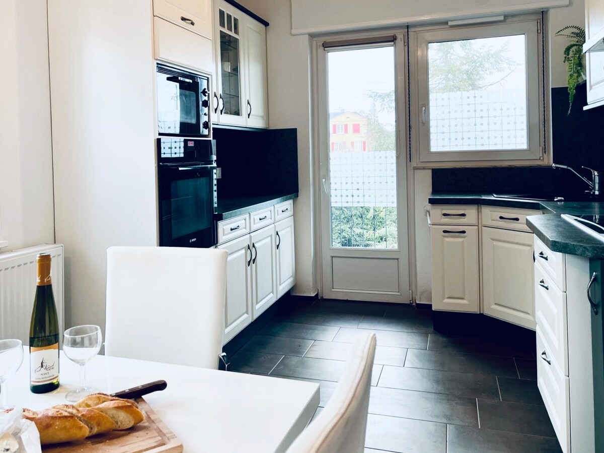 Apartamento muy atípico, estilo chalet, enteramente de madera y piedras. Espacio abierto con cocina, altillo, colchón Futon de algodón orgánico, sofá cama y una hermosa terraza de 22 m2 al abrigo de las miradas. El acceso se hace a través de una escalera metálica y una pasarela metálica. El alojamiento se encuentra en el centro de Gerstheim con todas las tiendas cercanas a pie ( supermercado, panadería, kebab y pizzería ). Se encuentra a 25 km de Estrasburgo y a 18 km de Europa Park.