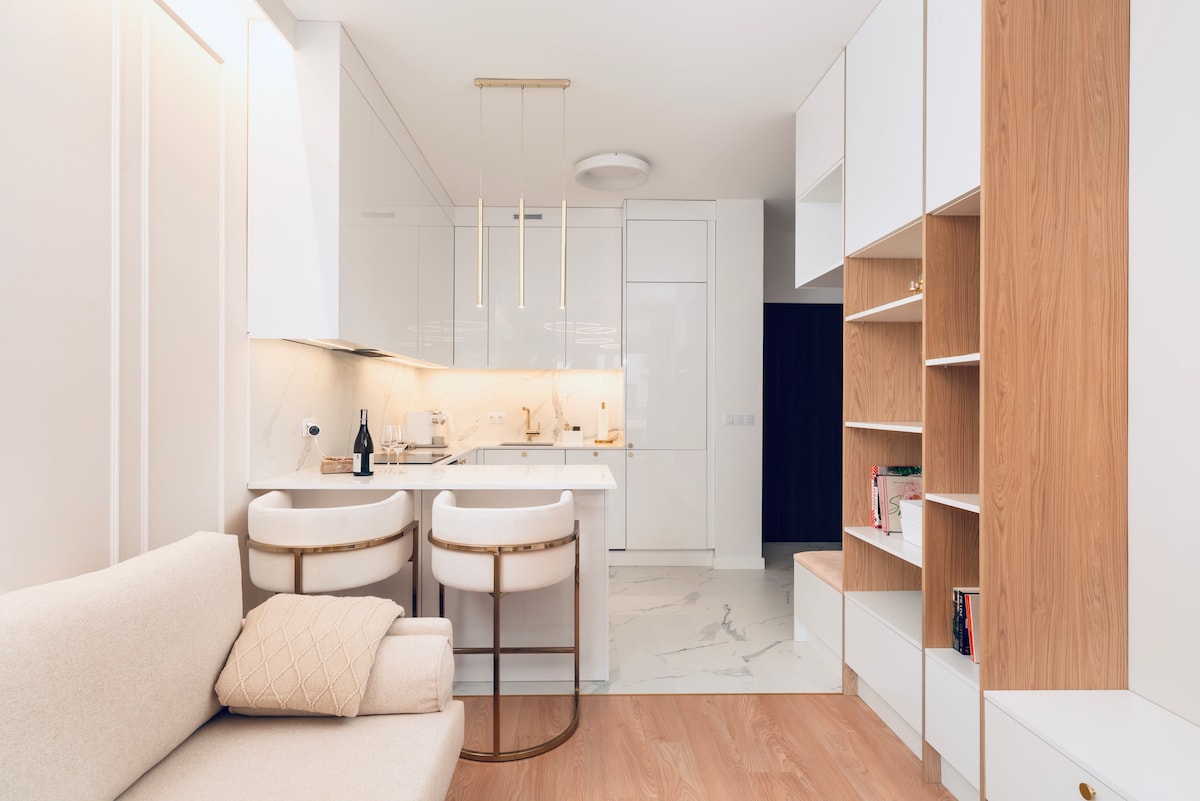 Un apartamento nuevo y cómodo, inaugurado en mayo de 2025. Un espacio funcional, diseñado de forma óptima como una única sala de estar con una moderna cocina americana, un amplio salón con una gran televisión, una barra de comedor y una cama plegable que proporciona un sueño cómodo y ahorra espacio. Alto nivel: el apartamento está equipado con aire acondicionado e Internet rápido. Excelentes conexiones de transporte al centro de la ciudad. Plaza de aparcamiento con cargador para vehículos eléctricos.