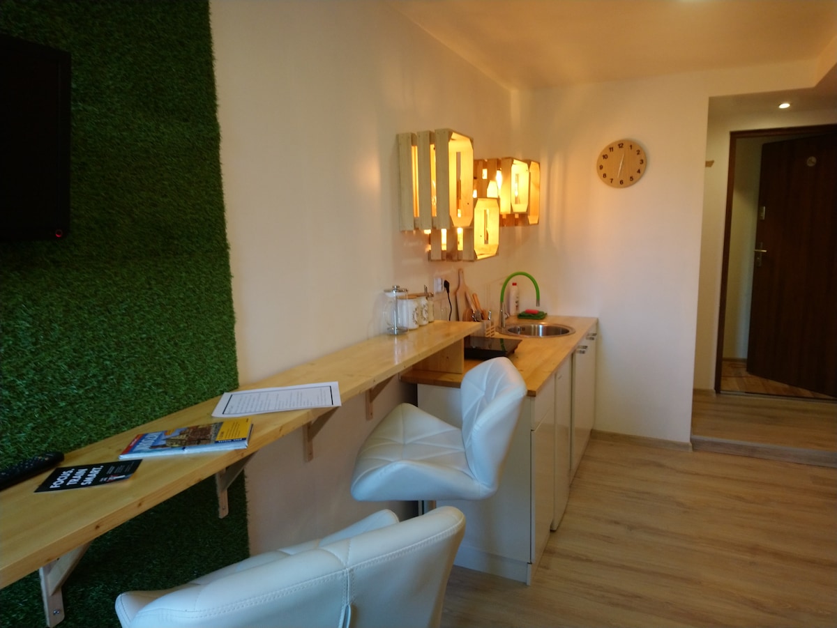 (apto para motociclistas y ciclistas) El estudio está en una villa alemana ubicada en el corazón del parque Szczytnicki. La propiedad es un apartamento independiente con una cocina pequeña equipada, en un estilo único que se refiere a los colores naturales de la naturaleza. El estudio 1 se hizo con el uso de materiales naturales en colores de madera cálida. La iluminación instalada te permite enfatizar fácilmente el estilo cálido del departamento.