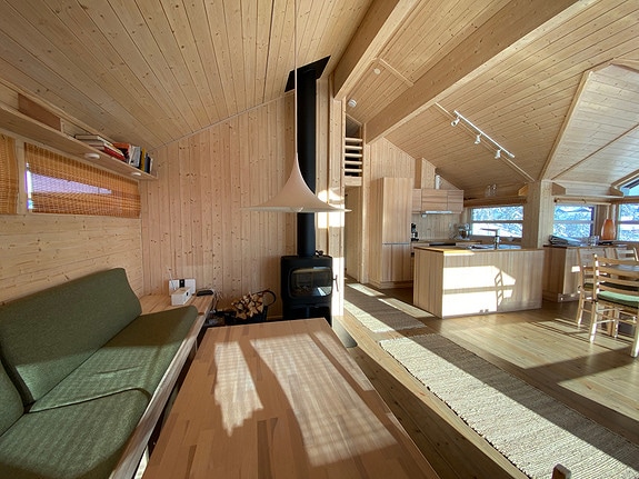 ¡Nuestra cabaña fue renovada y reconstruida en el otoño de 2022 y podríamos darte una cálida bienvenida a ti y a tus compañeros de viaje! La cabaña contiene tres dormitorios con camas de matrimonio además del loft/loft con sofá cama de matrimonio. Baño grande con lavadora y secadora y cocina bien equipada. En el loft hay un televisor que está conectado a banda ancha, por lo que puedes transmitir lo que quieres ver. Gran porche con muebles de exterior y brasero. Posibilidad de cargar vehículos eléctricos.
