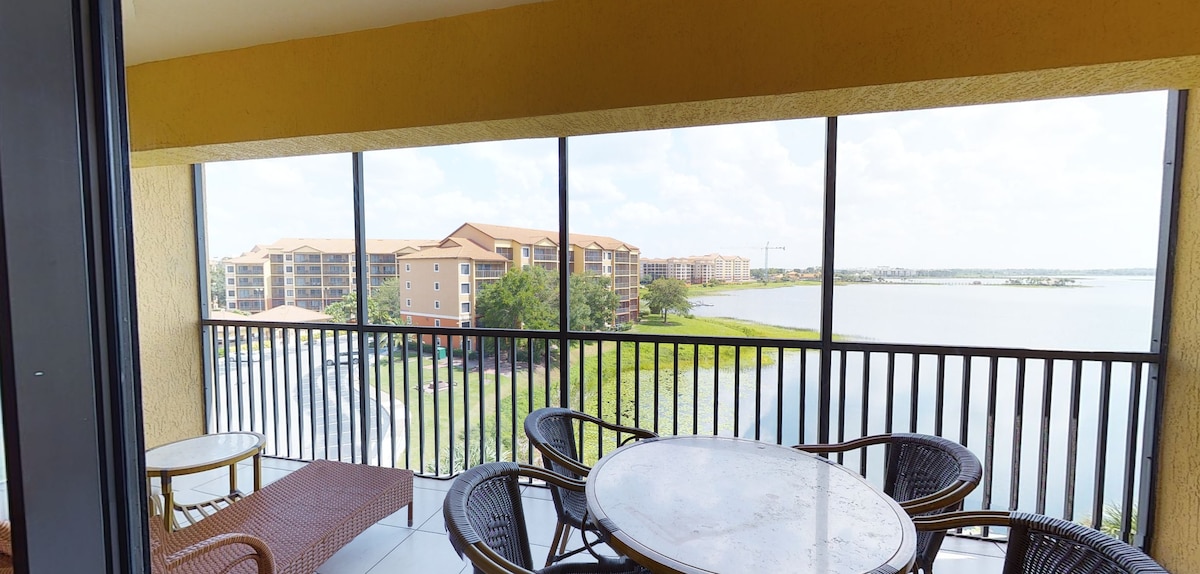 ¡Hermoso condominio de 2 dormitorios y 2 baños junto al lago está en el corazón de todo! A 2 millas de Universal, a 7 millas de Disney. Increíble resort con 3 piscinas, 3 jacuzzis, parque infantil y restaurante (solo desayuno). Cocina totalmente equipada (sin horno) con todo lo necesario para preparar comidas. 2 suites más sofá cama tamaño queen (4 camas, 2 baños completos). El balcón del noveno piso tiene increíbles vistas de Universal y el lago. La unidad tiene 3 televisores y WIFI para mantenerte conectado. Lavandería en el edificio.