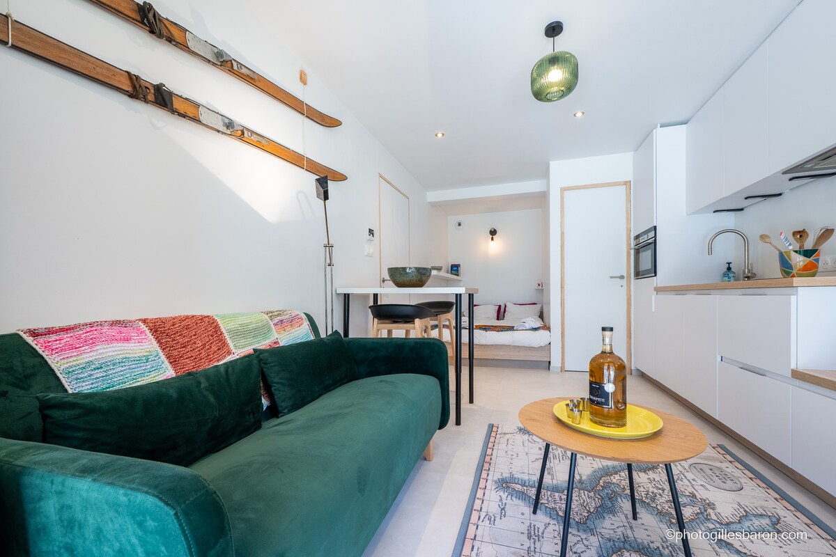 Le ofrecemos un apartamento de 30 m2 , recientemente renovado , con un balcón orientado al sur .A su llegada encontrará sus camas hechas, así como la ropa de baño . Con una ubicación ideal para practicar esquí, senderismo y cerca de las tiendas. A 200 metros de la piscina de patinaje. La cocina está equipada con lavavajillas, horno, microondas, cafetera tipo «nespresso» y horno de raclette.