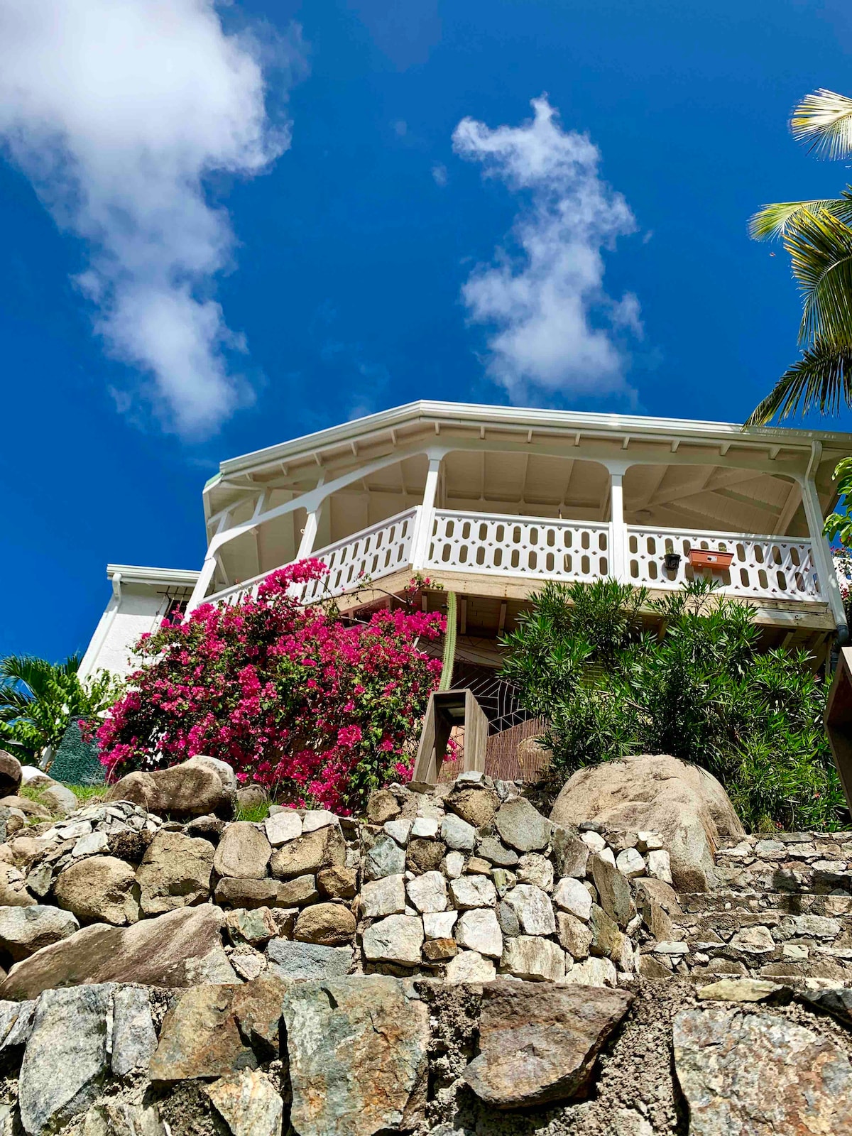 Amplia casa independiente con piscina privada a 5 minutos a pie de Orient Bay. Magnífica vista a las playas e islas circundantes. Suavidad de la brisa caribeña. Mucho espacio con una gran terraza de 600 pies cuadrados para relajarse frente al mar. Cocina y comedor de 250 pies cuadrados abiertos muy ampliamente a la terraza. Amplia sala de estar acondicionada y ventilada de 350 pies cuadrados con gran sofá cama y baño. Arriba, dormitorio grande y muy luminoso acondicionado de 350 pies cuadrados con su espacio de oficina y baño.